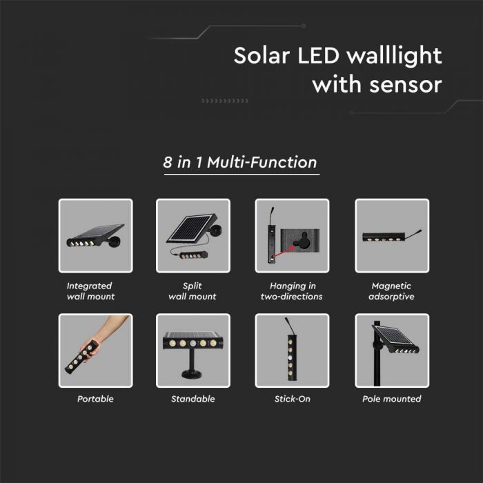 • 8IN1 višenamjenska solarna LED zidna svjetiljka s PIR senzorom