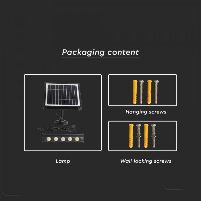 8W LED solarna zidna lampa sa senzorom 6400K crno kućište