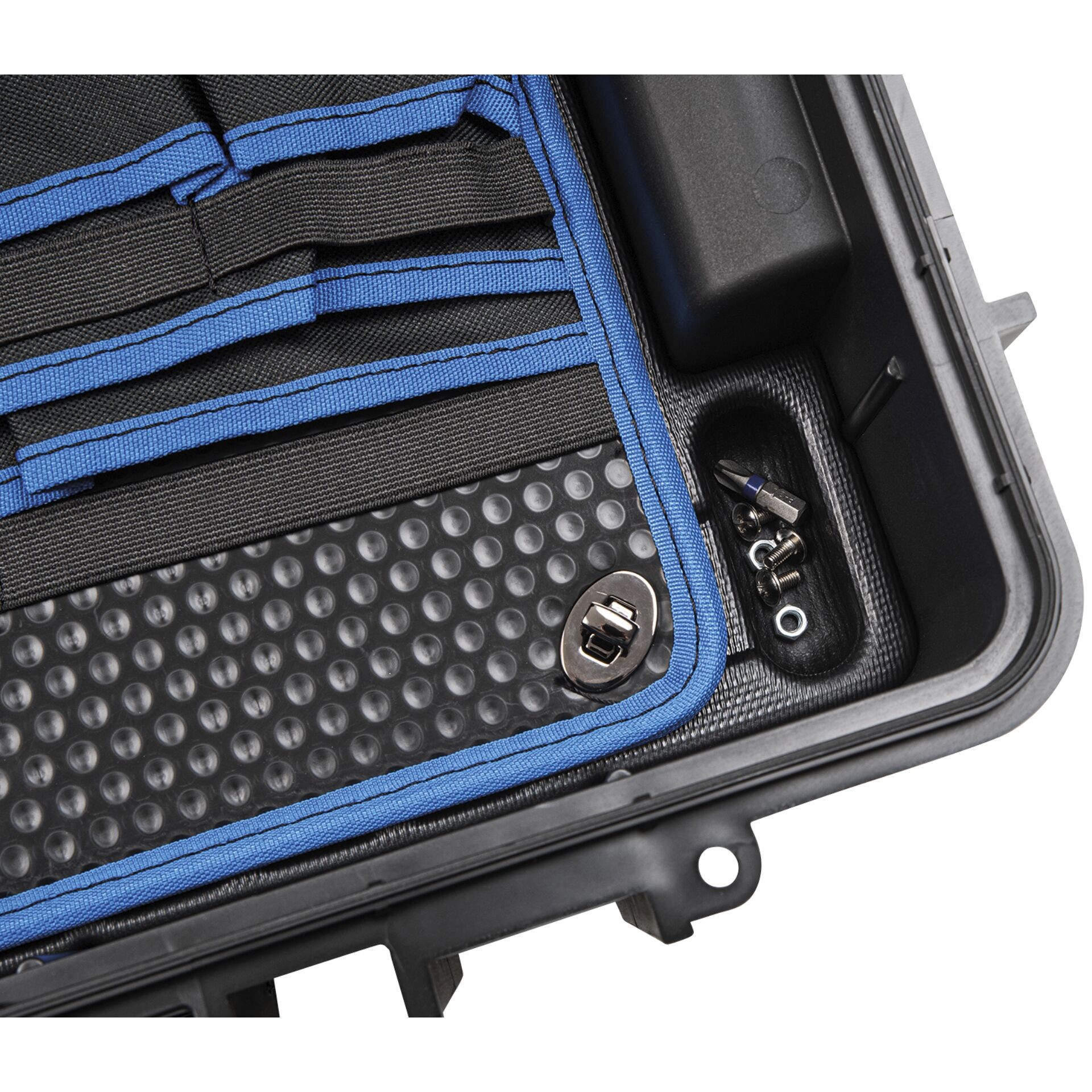 Jumbo 6600 opravdava svoje ime i zaista je izdržljiva kutija. Može izdržati čak i najnepovoljnije uvjete i štiti unutrašnjost od udaraca, prašine i prskanja vode. To kutiju za alat čini pouzdanim i robusnim suputnikom u svakom trenutku. Ploče za alat unutar kutije su pregledno raspoređene i nude puno prostora za razne alate. Donja ladica se može pojedinačno podesiti pomoću aluminijskog sustava pregrada, a zahvaljujući dvjema integriranim magnetskim ladicama, svoje mjesto pronalaze i mali dijelovi poput vijaka. Posebno praktično: dvije plinske opruge sprječavaju zatvaranje poklopca, osiguravajući jednostavan pristup alatima. Kotačići i teleskopska ručka osiguravaju jednostavno rukovanje i udoban transport.