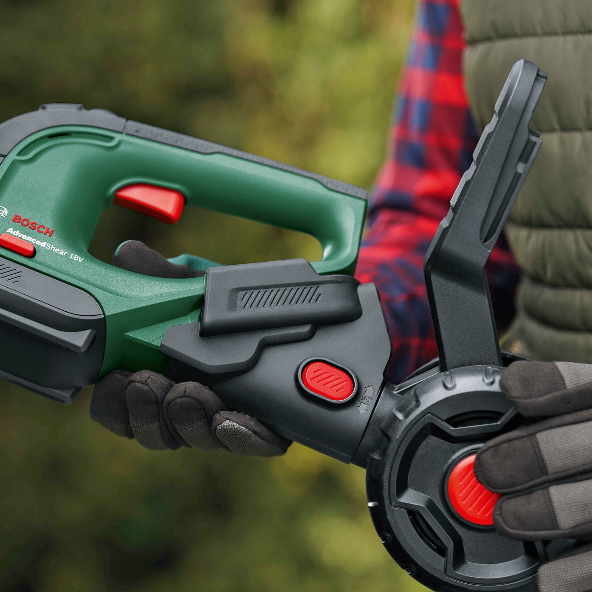 With the AdvancedShear 18V-10 extension rod, bending and kneeling for trimming grass or cutting shrubs are a thing of the past. This adjustable, up to 115 cm long extension bar ensures high comfort and accuracy thanks to various design features. For optimal comfort, the bar can be rotated 90° left or right. This makes it ideal for precise trimming on the edges of lawns or flower beds. When working in hard-to-reach areas, such as hanging vegetation or the care of small hedges, the rod head can be fully adjusted up to 130 degrees for an extremely versatile application. Rotate in 15 different positions. With its simple, 3-stage design, this wireless accessory is the ideal helper for perfect garden care.