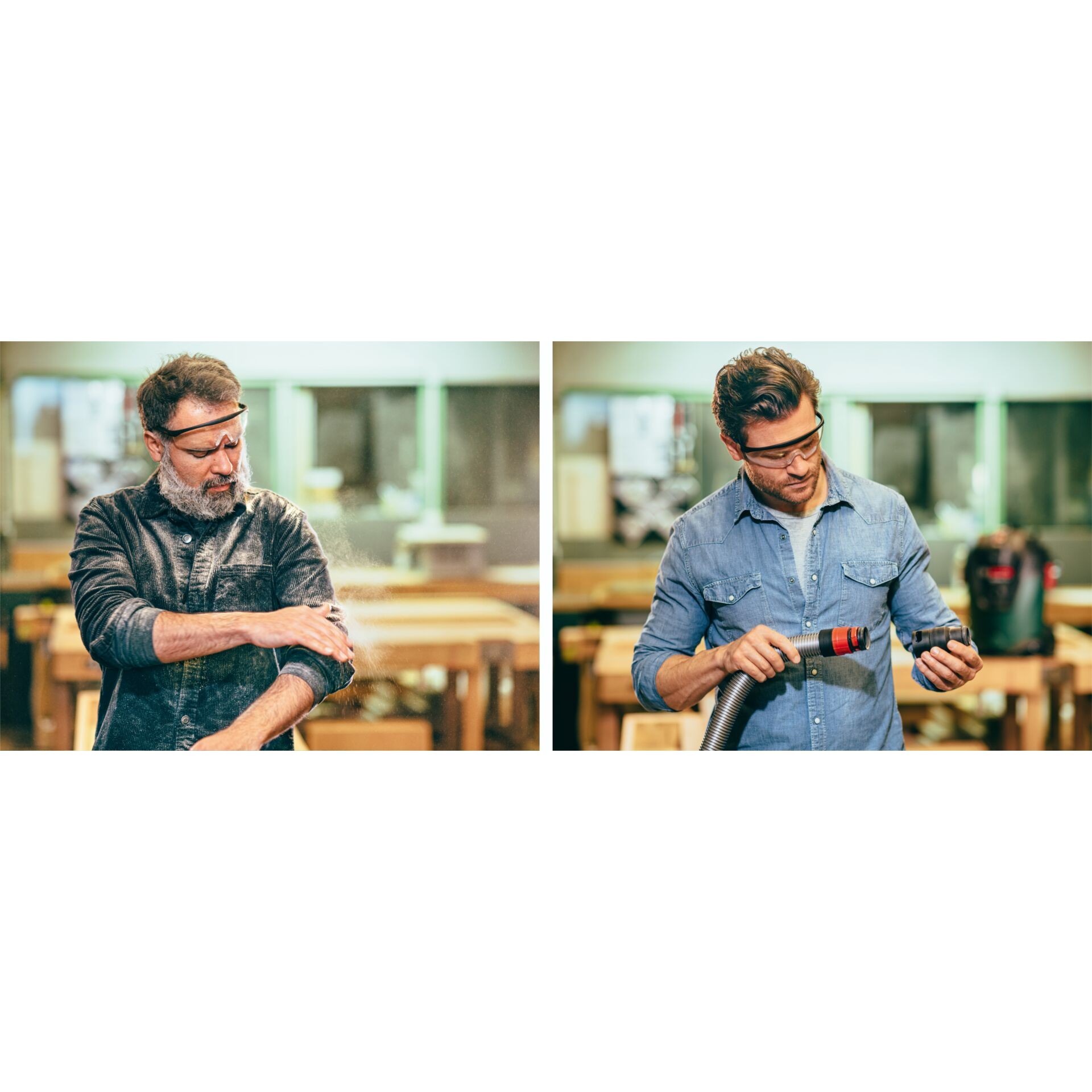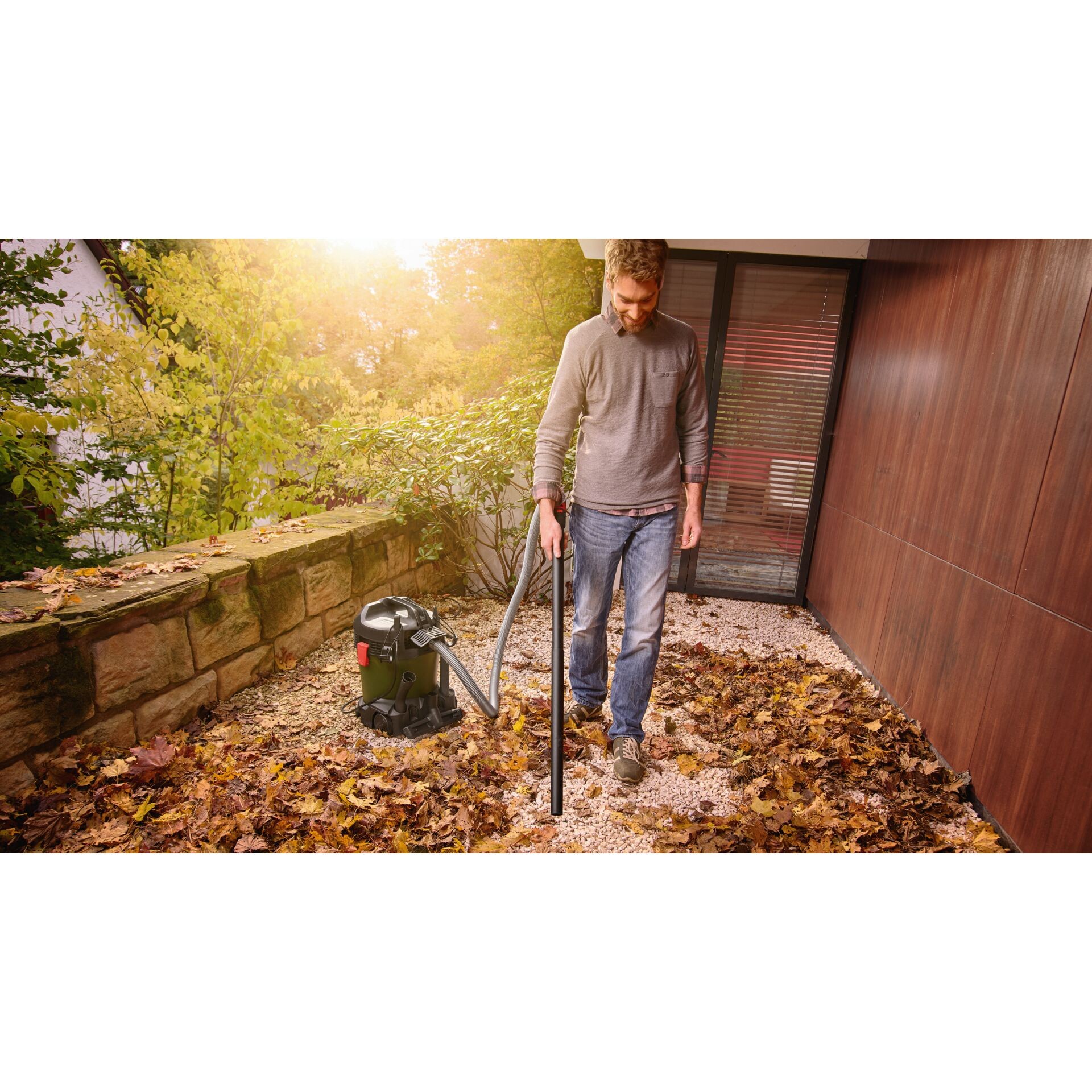 The all-purpose AdvancedVac 20 is the ideal solution for cleaning both liquid and dry materials on floors or for use during DIY applications. Large volumes of water can be easily drained through its drain valve, while its blowing function moves leaves and dirt from hard-to-reach areas. Its antistatic hose minimises electrical discharge. For constant cleaning this vacuum cleaner attaches directly to any current Bosch Home & Garden and various other manufacturer's power tools thanks to the flexible universal adapter and its conical shape. It automatically turns on and off in sync with the tool, vastly improving handling and reducing cleaning time.