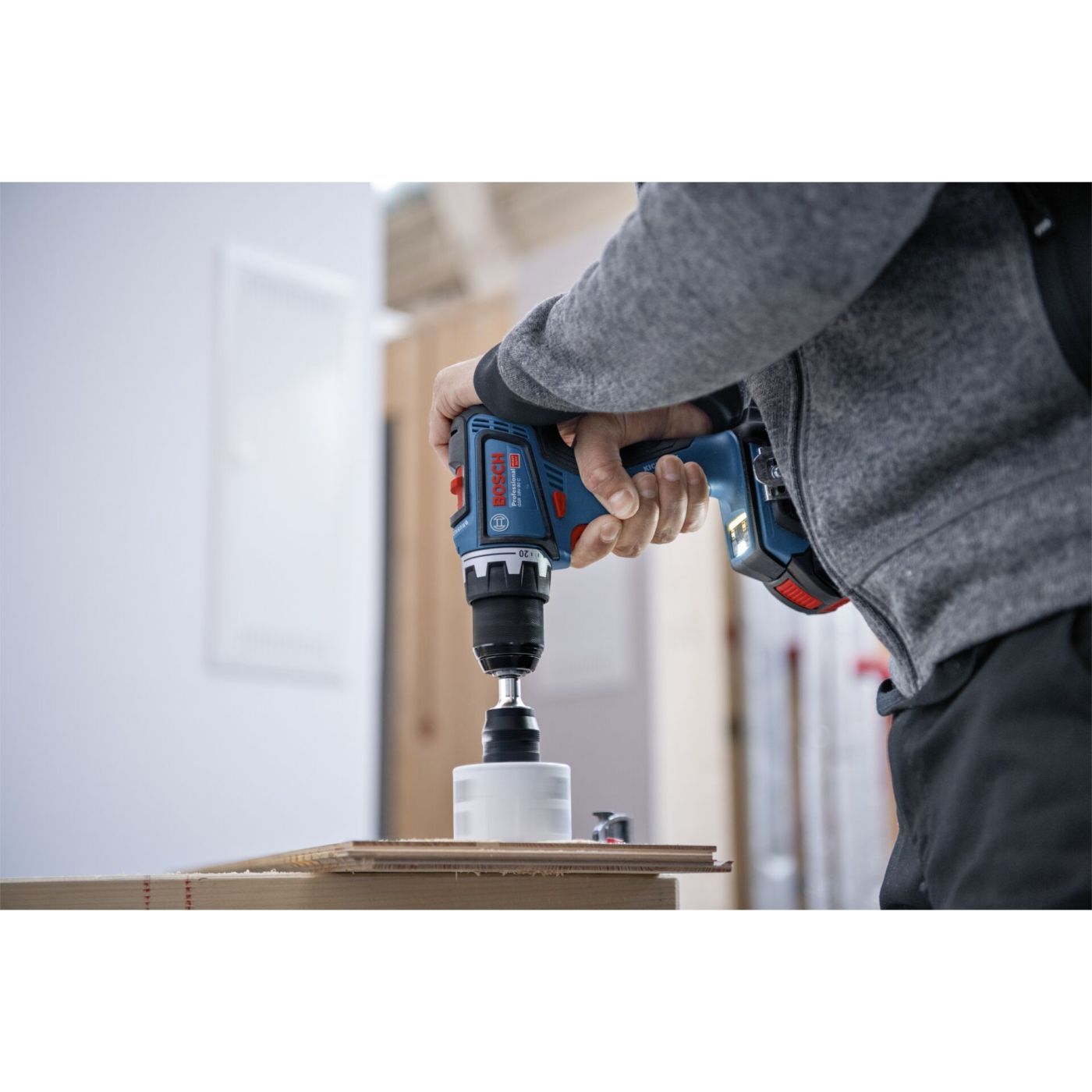 GSR 18V-90 C Professional je snažna akumulatorska bušilica-odvijač s motorom bez četkica koji pruža vrhunske performanse sa 64 Nm i 2100 min-1 o/min. Njegova kompaktna duljina glave od 163 mm osigurava idealnu praktičnost. Robusna metalna stezna glava od 13 mm omogućuje izvrstan prijenos okretnog momenta za svaki posao. Bušilica ima izvrsnu kontrolu alata za veću zaštitu korisnika i alata: HMI nudi podesivu funkciju KickBack Control koja smanjuje rizik od povratnog udara u slučaju zaglavljivanja alata i naglog okretanja alata. Podesiva funkcija Precision Clutch sprječava prekomjerno zatezanje nakon što je postignut unaprijed postavljeni okretni moment, čime se smanjuje trošenje i buka spojke.