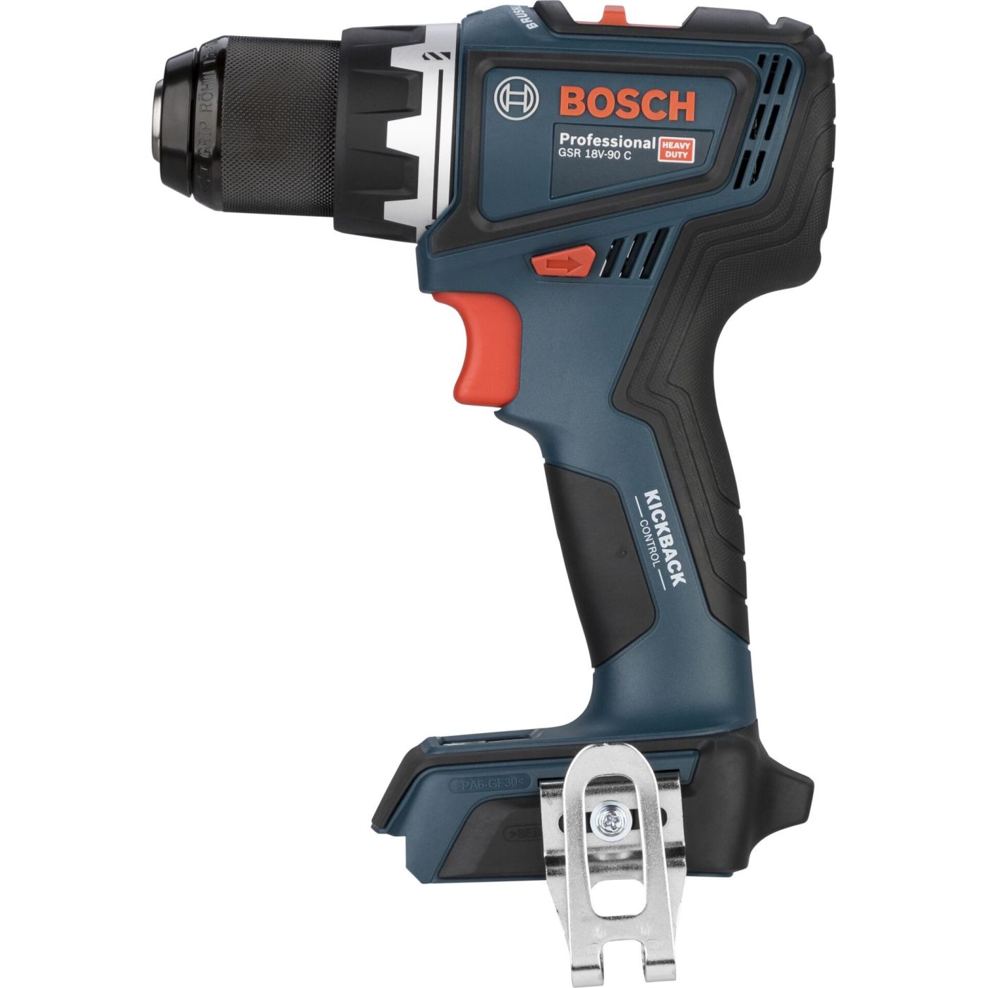 GSR 18V-90 C Professional je snažna akumulatorska bušilica-odvijač s motorom bez četkica koji pruža vrhunske performanse sa 64 Nm i 2100 okretaja u minuti. Njegova kompaktna duljina glave od 163 mm osigurava savršenu upravljivost. Robusna metalna stezna glava od 13 mm omogućuje izvrstan prijenos okretnog momenta za svaki posao. Bušilica-odvijač pruža izvrsnu kontrolu alata za veću zaštitu korisnika i alata: HMI nudi podesivu funkciju KickBack Control koja smanjuje rizik od povratnog udara u slučaju zaglavljivanja alata i naglog okretanja alata. Podesiva funkcija Precision Clutch sprječava prekomjerno zatezanje nakon što je postignut unaprijed postavljeni okretni moment, čime se smanjuje trošenje i buka spojke.
