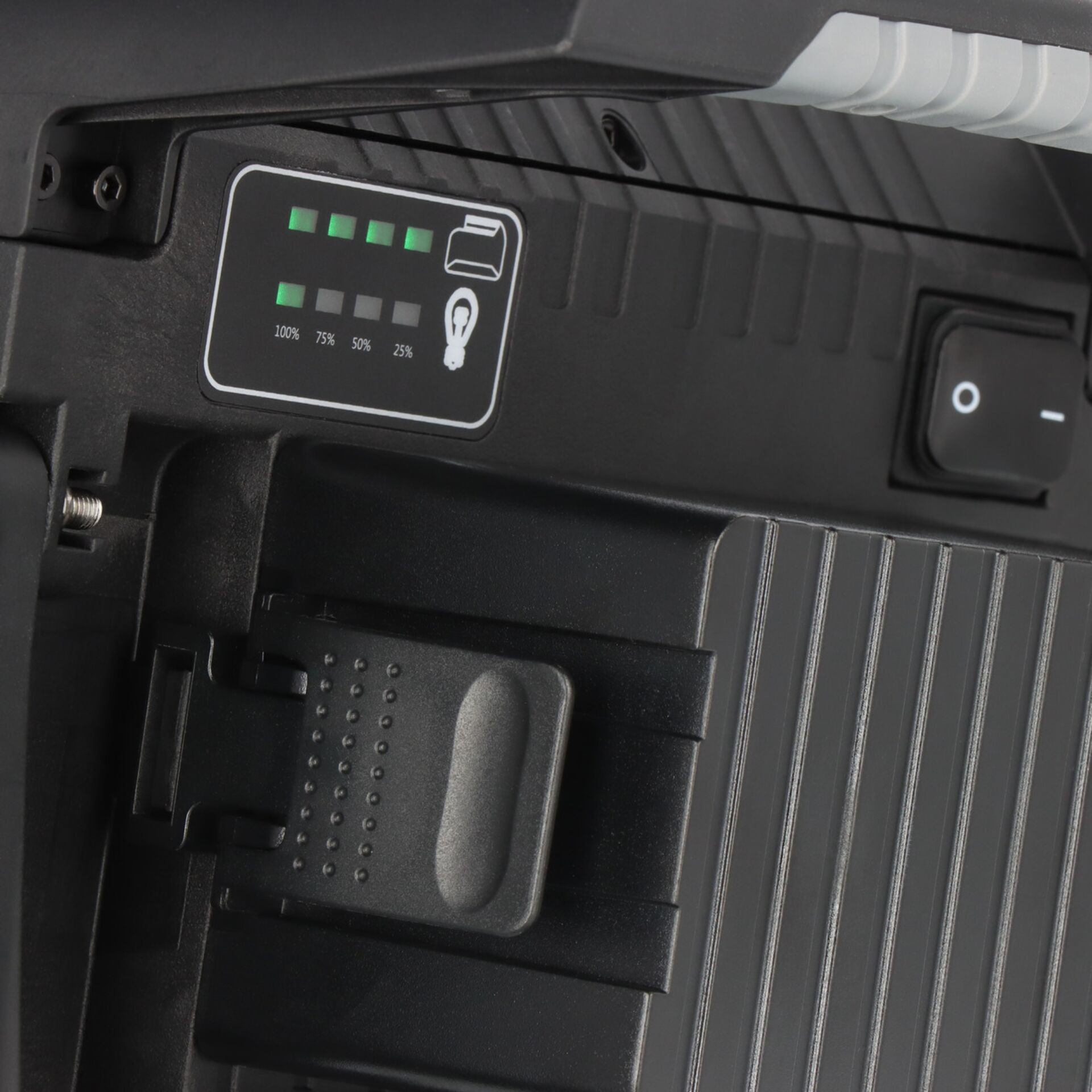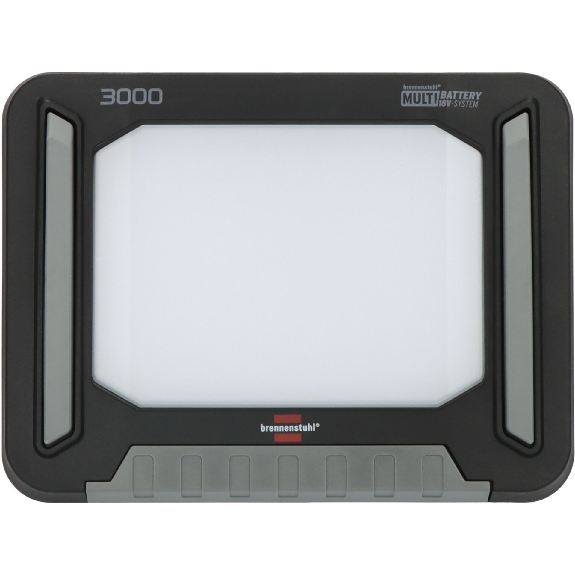 Thanks to the Brennenstuhl Multi Battery 18 V system, the extremely robust and bright Professional Multi Battery LED cordless spotlight with 30 W output is compatible with various 18 V rechargeable batteries (different Ah classes) from the eleven power tool manufacturers Bosch Professional, Dewalt, Einhell, Fein, Festool, Flex, Hikoki, Makita, Metabo CAS, Milwaukee and Würth. Regardless of which battery system is already in use, the interface technology enables maximum flexibility and allows you to use the battery system of your choice. The appropriate adapter can be fitted to the interface in just one easy step. The LED construction spotlight with 3150 lm offers optimum light distribution thanks to wide-area illumination with reduced glare. The impact-resistant construction spotlight can be used flexibly and as required, whether standing upright, lying flat for large-area illumination or mounted on a tripod. The impact-resistant work spotlight with enormous luminosity thanks to built-in SMD LEDs also has a battery status indicator for the remaining energy of the battery used (the batteries must be charged externally) and a protection system for Power Tool batteries. This protects the batteries used against deep discharge and overheating (caused by high load currents).