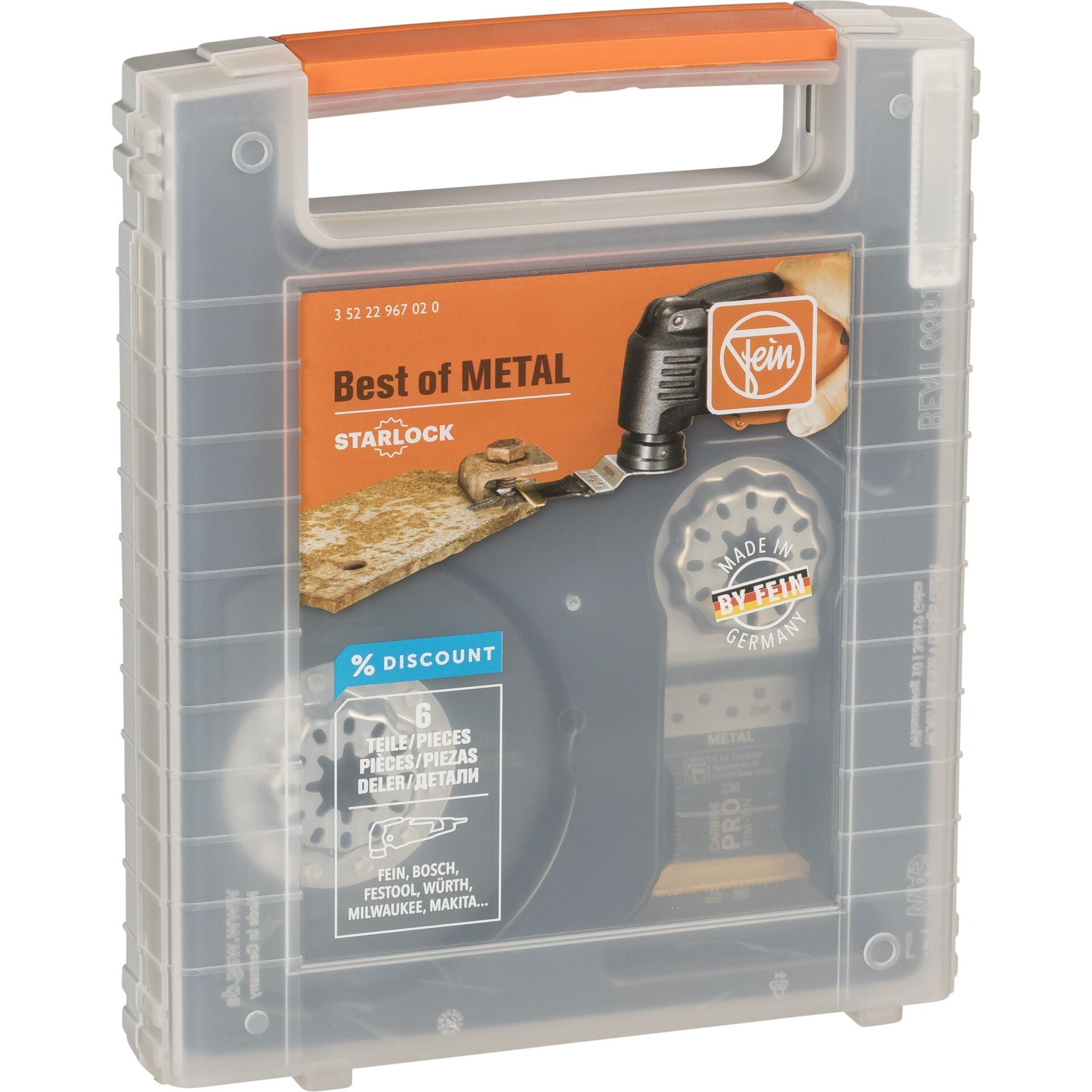 • Contents: 1 E-Cut CarbidePRO saw blade (40 x 32 mm), 1 each E-Cut Long-Life saw blades (50 x 35 mm and 50 x 50 mm), 1 E-Cut Universal saw blade (55 x 44 mm), 1 E-Cut Fine saw blade (50 x 30 mm), 1 full HSS segment saw blade (Ø 85 mm)
