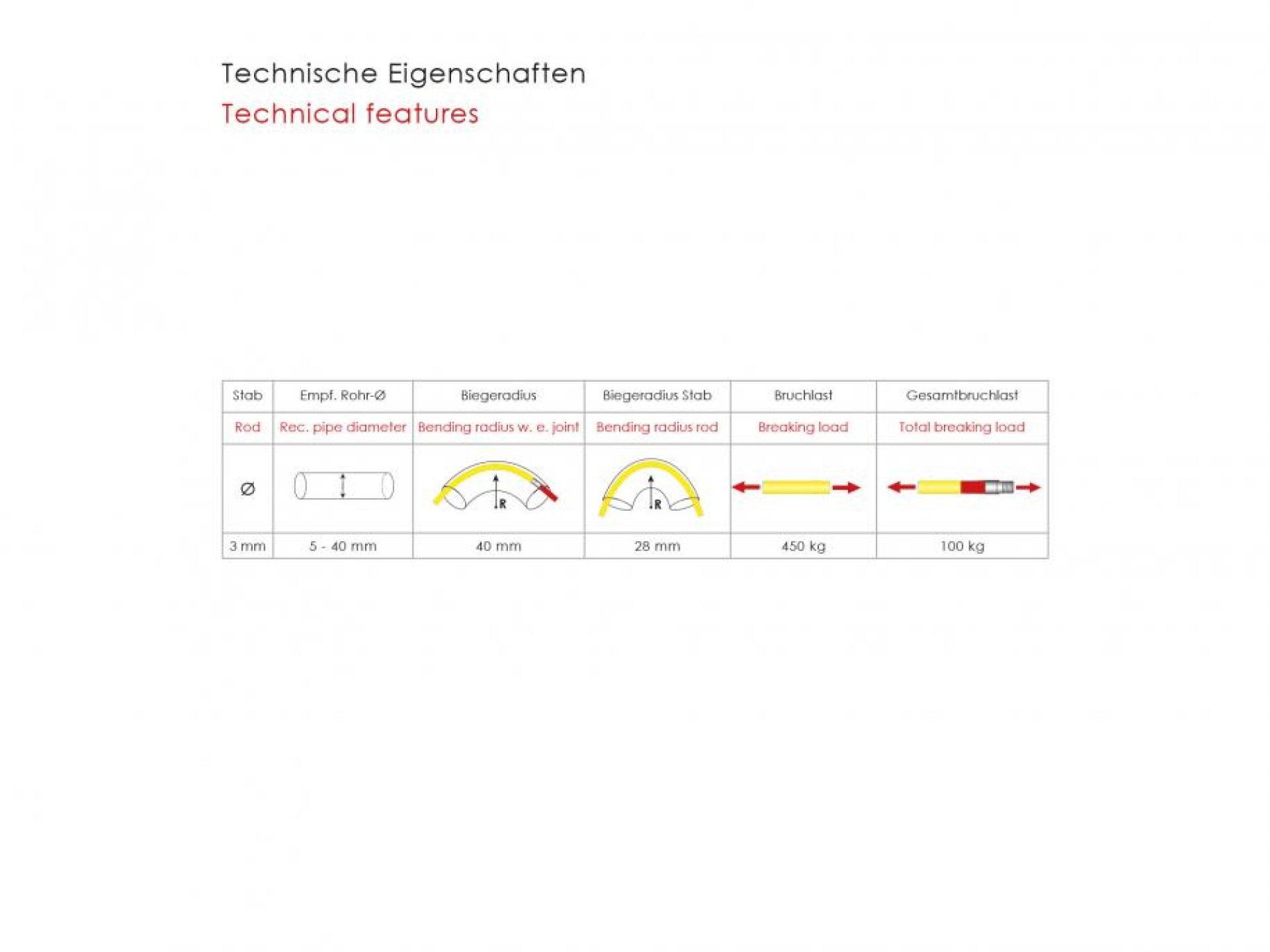 • Stakloplastika Ø 3 mm s patentiranom RG4.5 vodilicom, uključujući okretni zglob, pohranjena je u izuzetno otpornoj plastičnoj kutiji. S novo razvijenom RG4.5 vodilicom s prednjim navojem RTG Ø 3 mm, uključujući okretni zglob, moguće je prevladati radijuse savijanja do R = 40 mm.