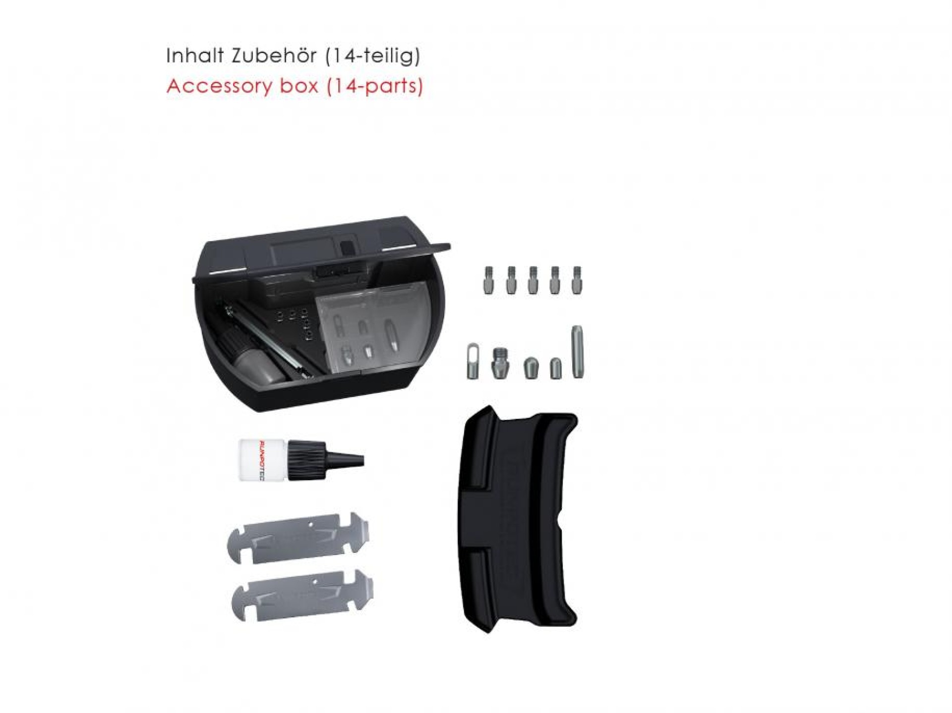 • Kutija se može otvoriti za servisne radove samo jednim vijkom na stražnjoj strani. To također omogućuje uklanjanje integrirane kutije za pribor, koja sadrži 14-dijelni set pribora. Priloženi adapter s unutarnjim navojem RTG Ø 3 mm na vanjski navoj RTG Ø 6 mm omogućuje mnoge moguće kombinacije.