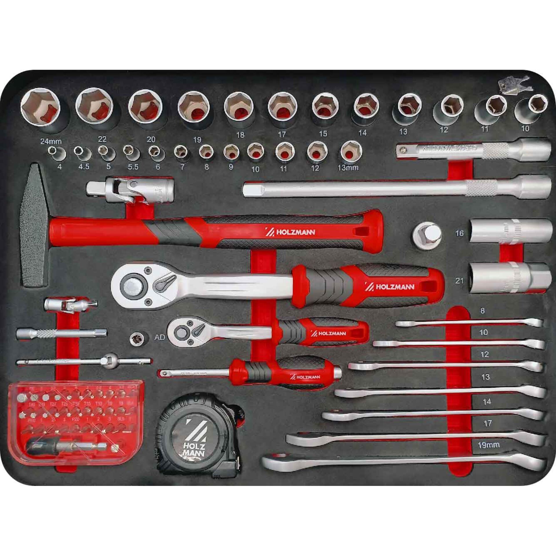 • 12x socket insert (1/2"): 10-11-12-13-14-15-17-18-19-20-22-24 mm