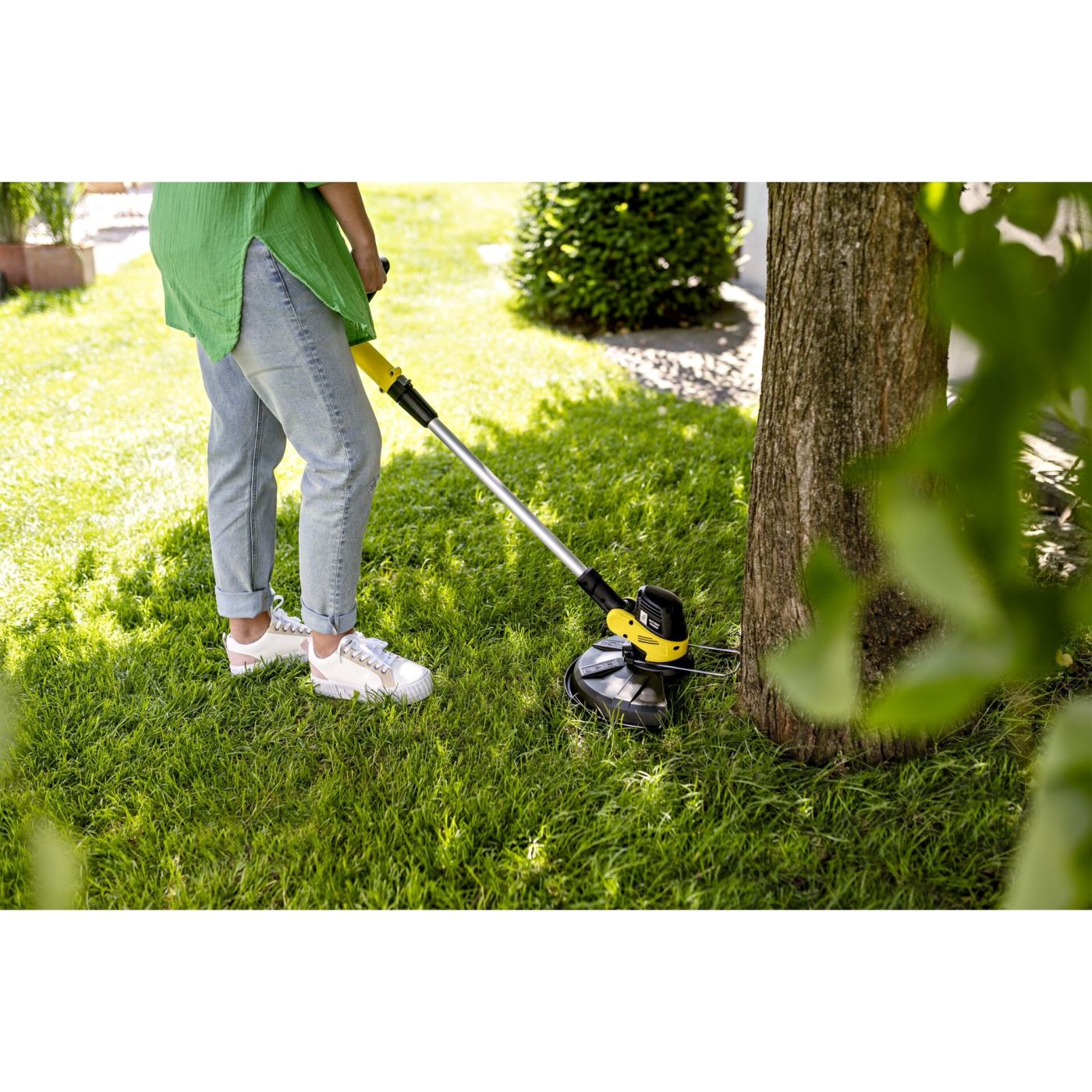 • Savitljiv glava trimera: Ergonomsko rezanje čak i pod niskim preprekama poput vrtnih klupa