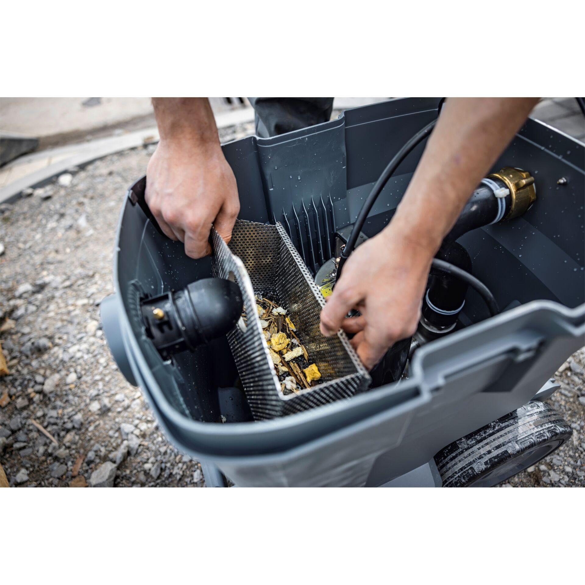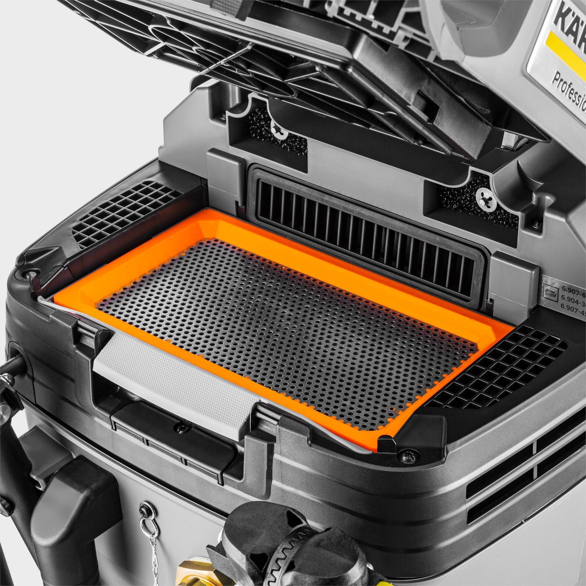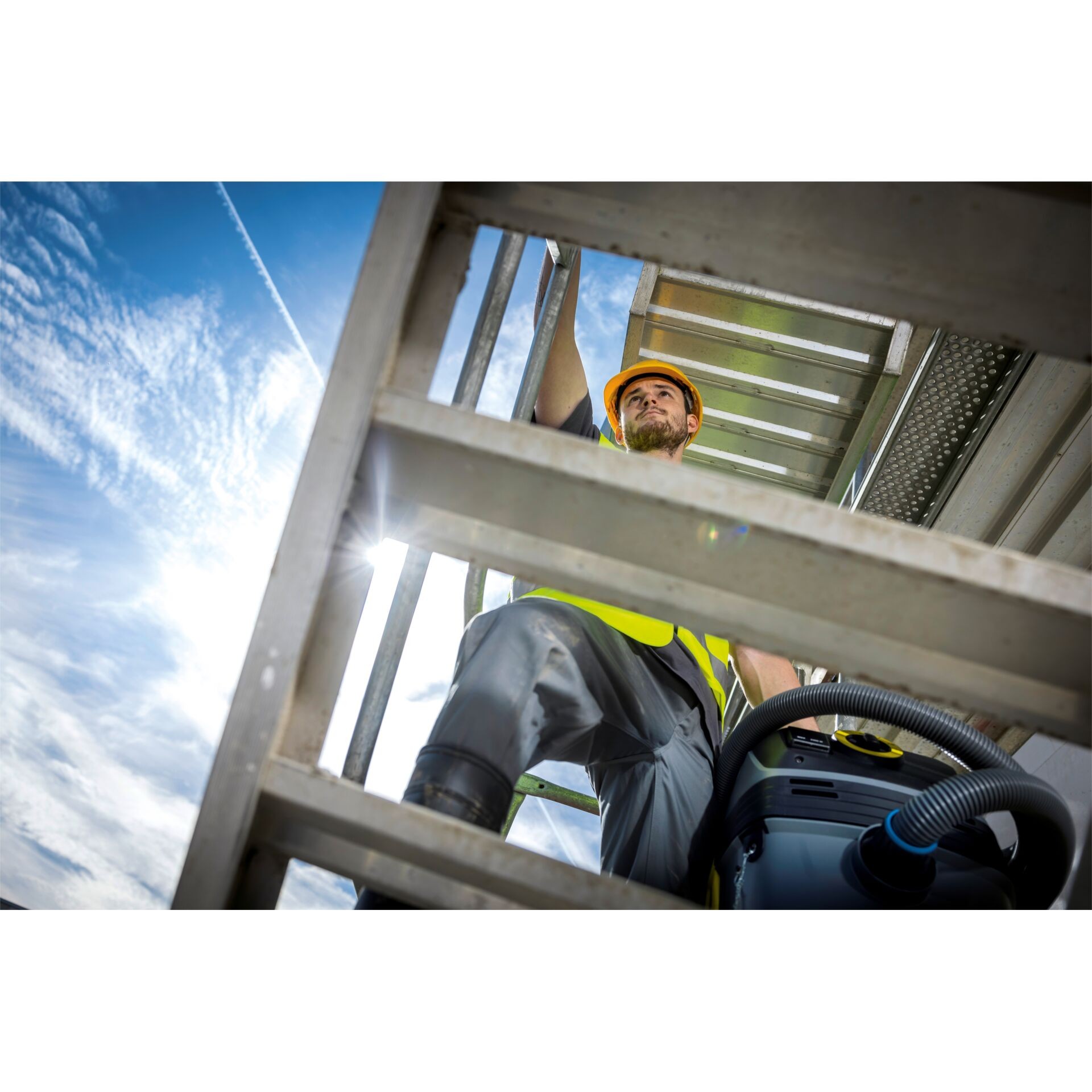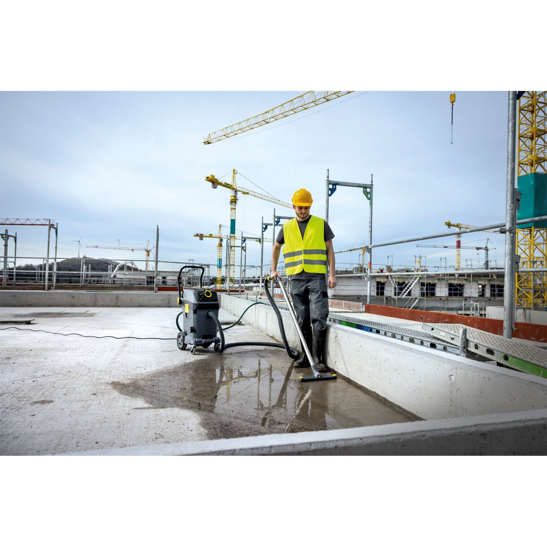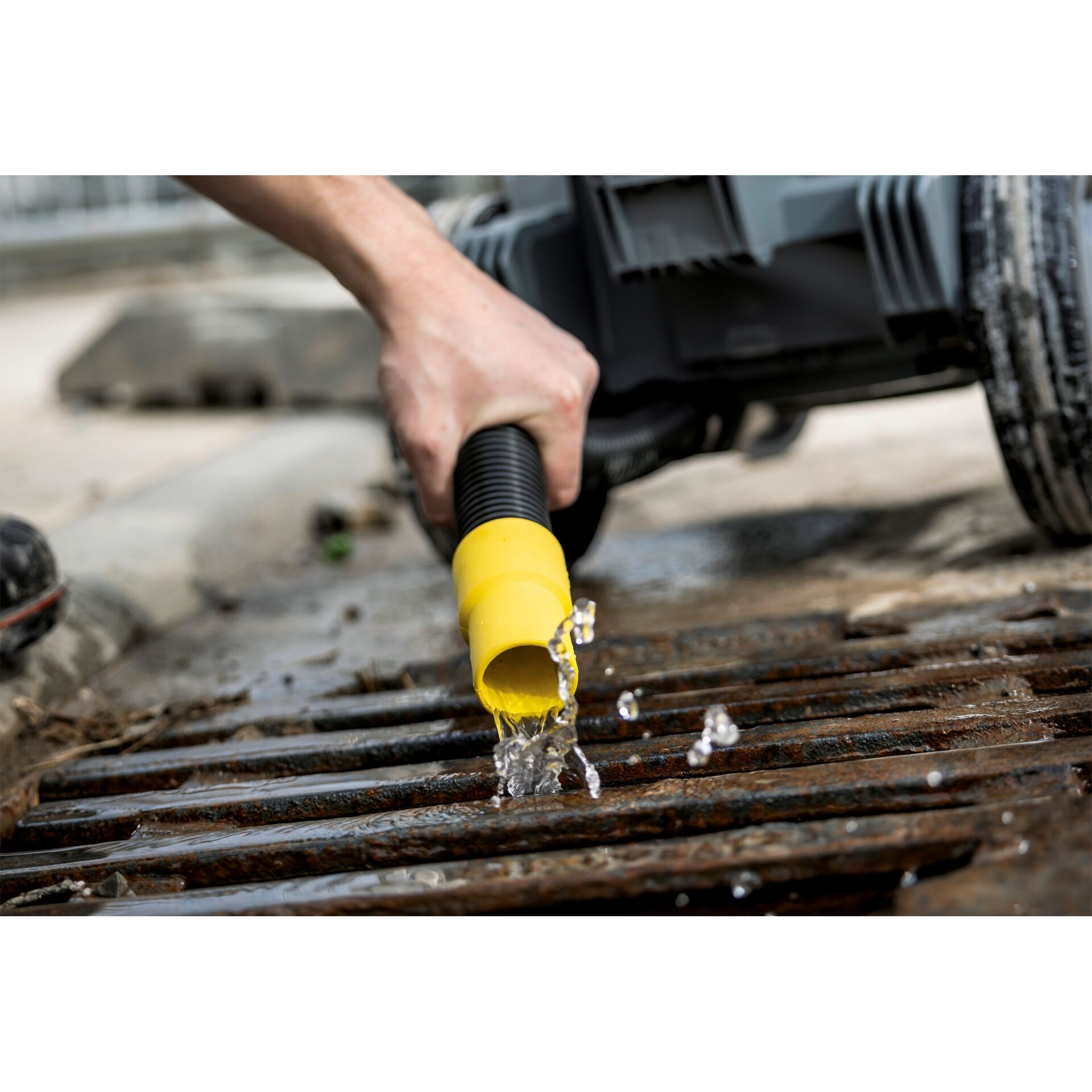Bilo da se radi o gradilištima ili industrijskim postrojenjima: usisavač za mokro/suho čišćenje NT 50/1 K tvrtke Kärcher posebno je dizajniran za brzo uklanjanje velikih količina vode. Zahvaljujući snažnoj pumpi za odvod, može usisati više od 300 litara prljave vode u minuti, uključujući i grubu prljavštinu do veličine zrna od 20 milimetara. Geka spojnica osigurava kompatibilnost s ovim široko korištenim sustavom spajanja za crijeva za vodu. Turbina i pumpa za odvod zaštićene su od oštećenja ili začepljenja usisanim malim dijelovima, kamenjem, lišćem ili ostacima zgrada učinkovitim filterima za prljavštinu. Metalni okretni kotačići na robusnom spremniku od 50 litara i kontinuirano podesiva ručka osiguravaju visoku mobilnost i jednostavan transport usisavača NT 50/1 K od vozila do mjesta upotrebe i natrag.