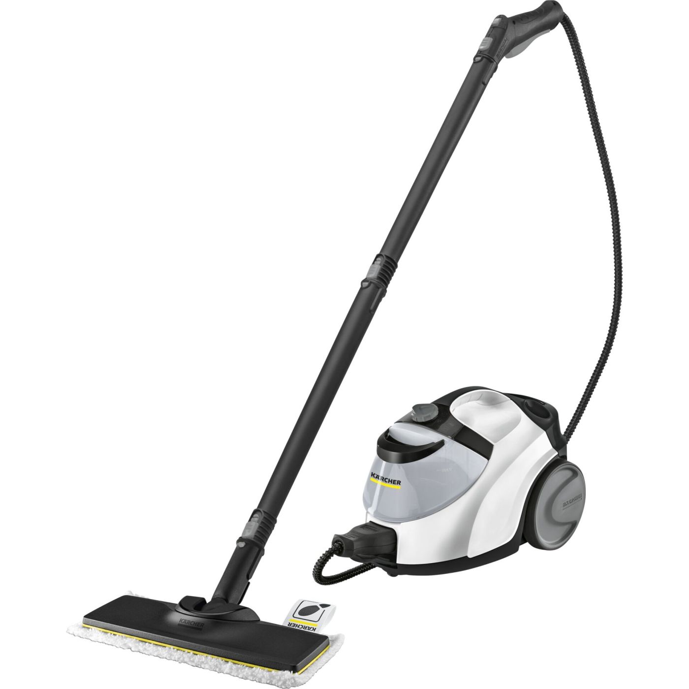 Cleaning and ironing with full steam? No problem for the SC 5 EasyFix from Kärcher. The powerful steam cleaner (4.2 bar steam pressure) also has a connection option for a steam pressure iron. Thorough cleaning with the Kärcher steam cleaner eliminates up to 99.999 % of viruses1 and 99.99 % of all common household bacteria2 on standard household hard surfaces. With a wide range of accessories, tiles, hobs, extractor hoods and even the smallest crevices are optimally cleaned - whether lightly or stubbornly soiled. The EasyFix floor nozzle with flexible joint enables ergonomic working. And the lamella technology enables perfect cleaning results. The floor cloth can be conveniently attached to the floor nozzle and removed without coming into contact with dirt. The VapoHydro function removes stubborn dirt even more easily by adding hot water. The steam intensity is adjustable and can be adapted to the surface and dirt. The water tank is removable and permanently refillable: ideal for uninterrupted cleaning. Further extras: integrated cable compartment, accessory storage compartment, parking position for the floor nozzle.