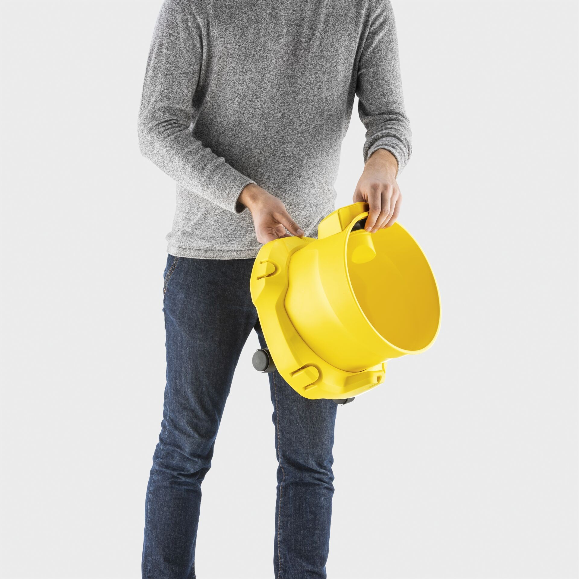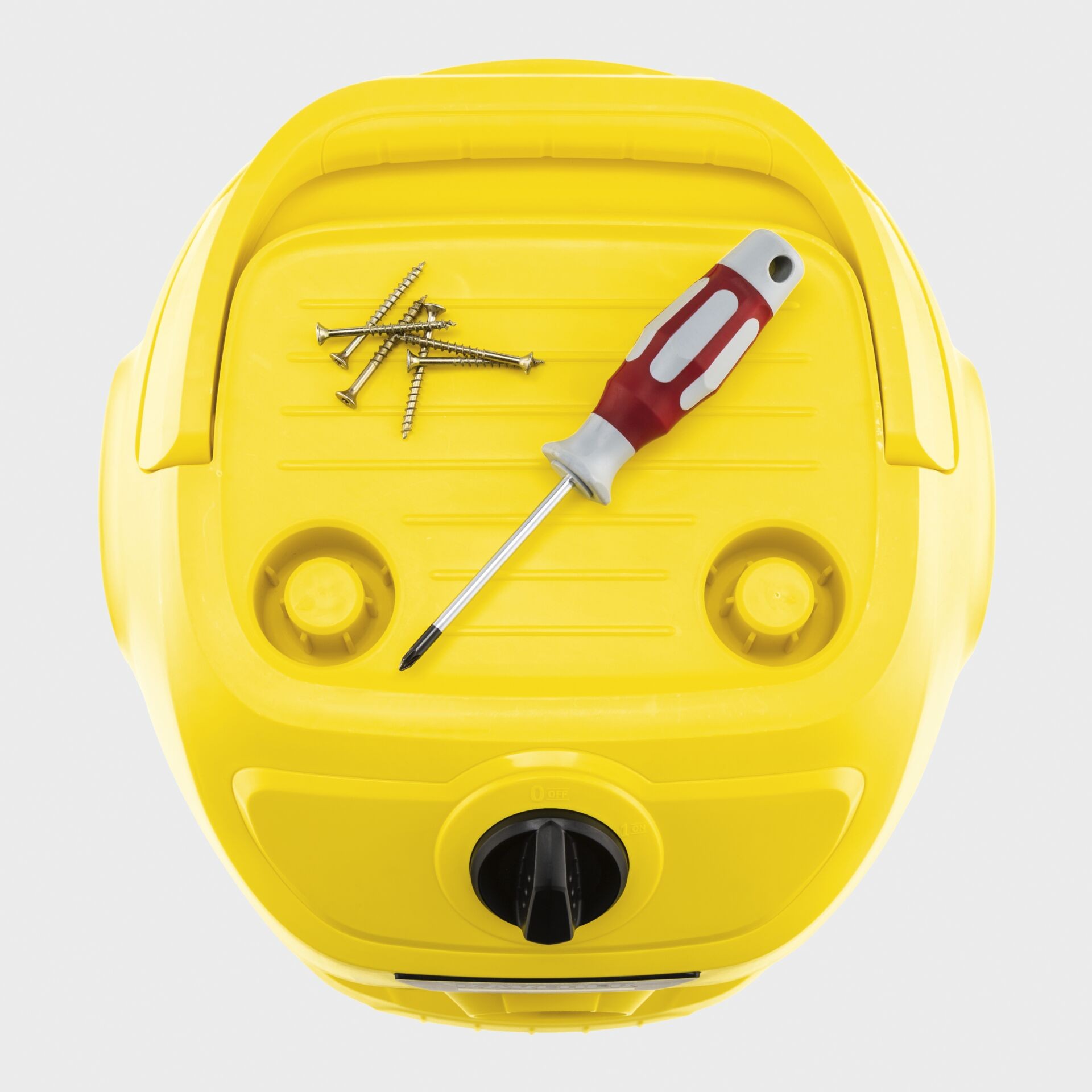The WD 2 Plus V-12/4/18 impresses with its compact design and is super absorbent and energy-efficient - with a power consumption of only 1000 W. The appliance achieves top cleaning results for dry, wet, fine and coarse dirt. The wet/dry vacuum cleaner has a robust and shock-resistant 12-litre plastic container, a 4-m cable and a 1.8 m suction hose with straight handle, clip-on floor nozzle and fleece filter bag.