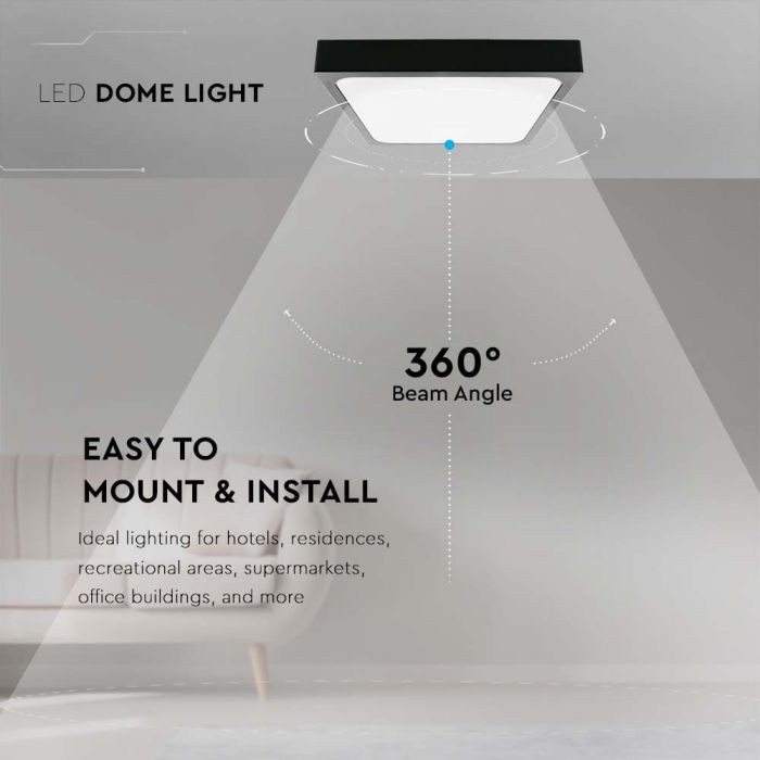 LED četvrtasta stropna lampa s crnim obrubom 24W 4000K IP44