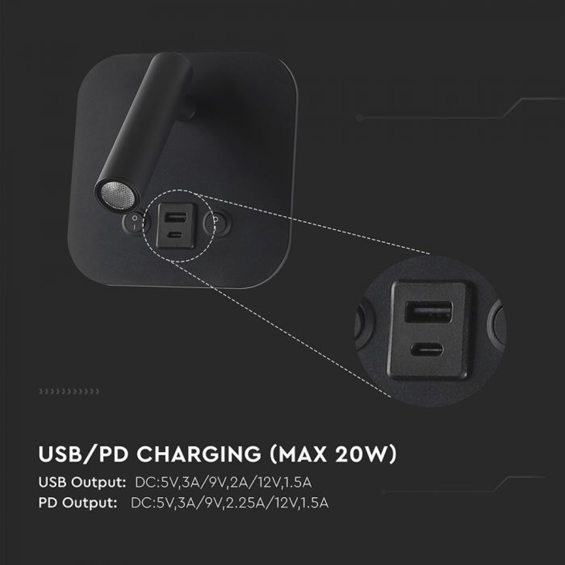 LED noćna svjetiljka 8W CREE čip 3000K IP20 USB/TIP C, crna