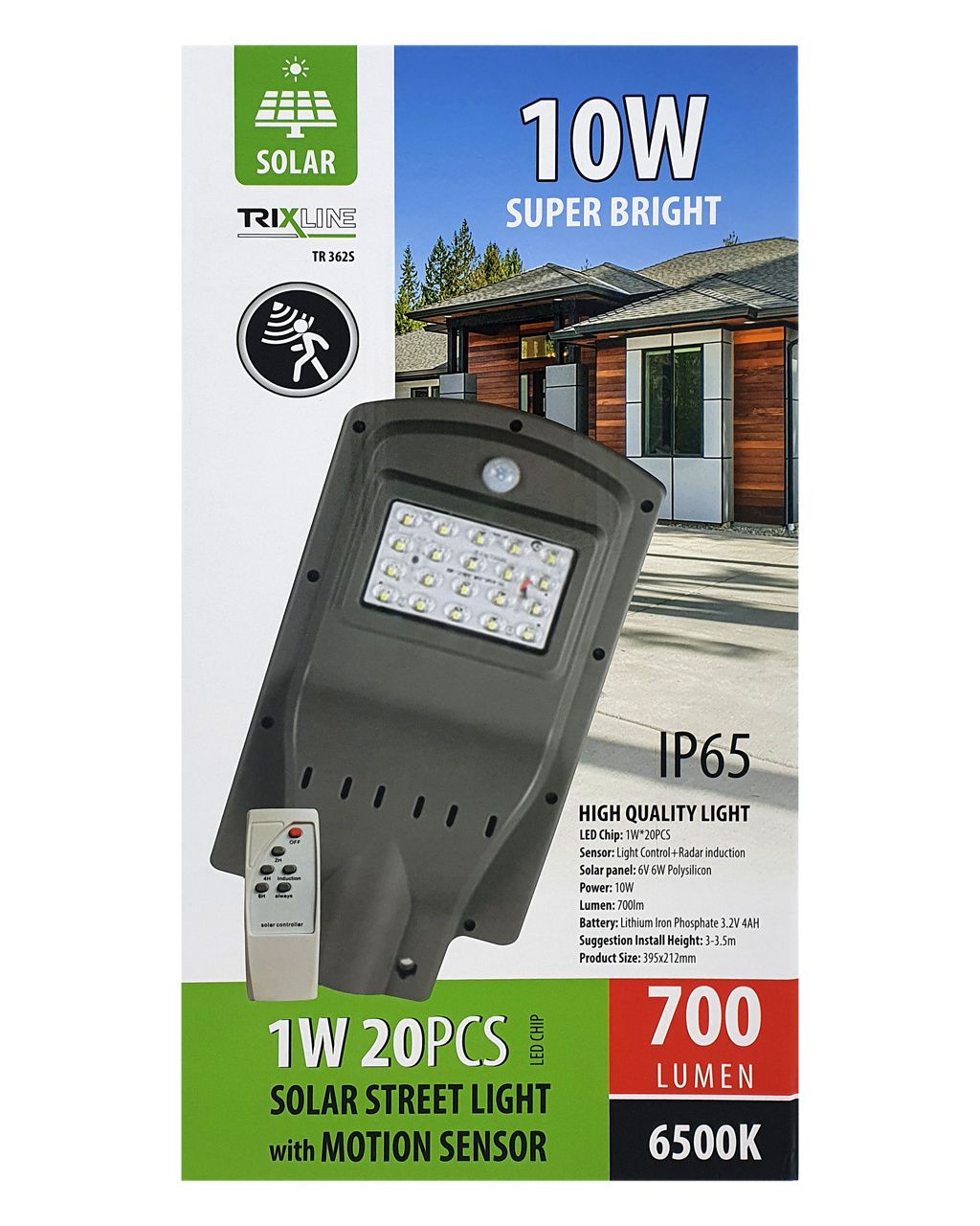 • Solarna ulična svjetiljka TR 362S Trixline 10W sa senzorom pokreta za daljinsko upravljanje.