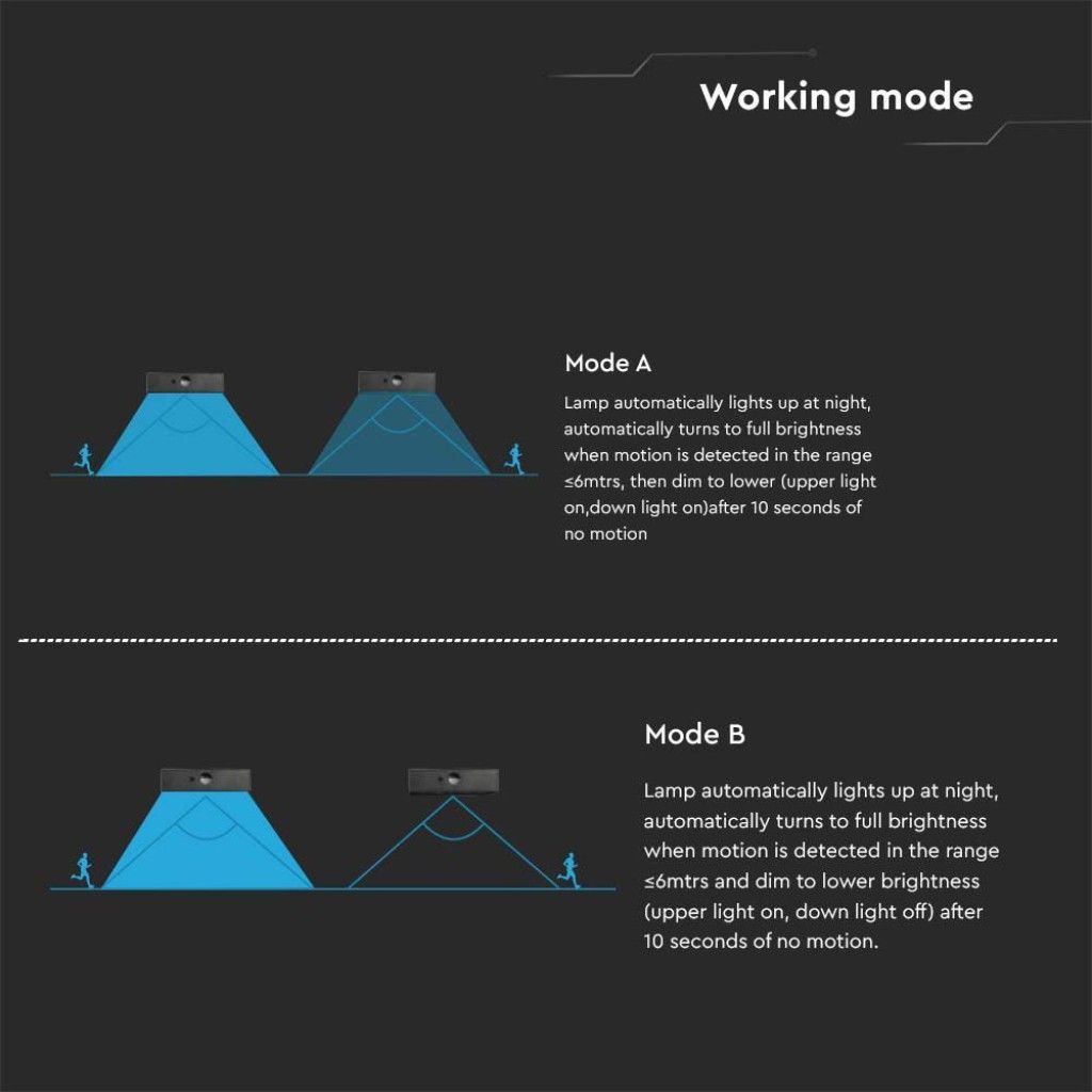 LED solarna zidna lampa 350lm baterija 3.7v 1200mAh 4000K+3000K crna