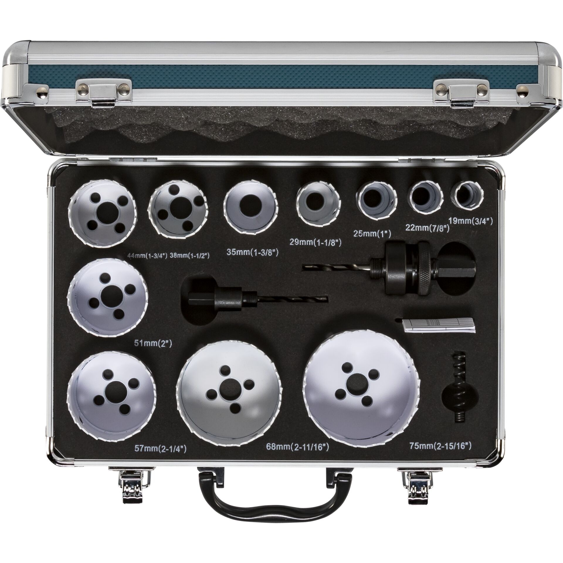 • Hole saws diameters from 19 - 75 mm in practical carrying case