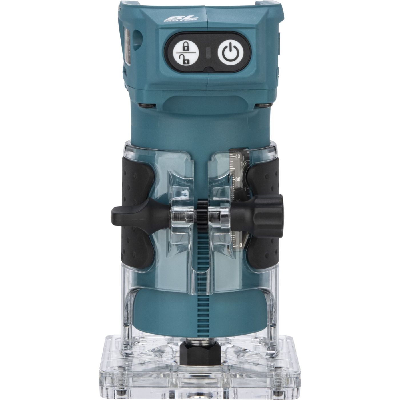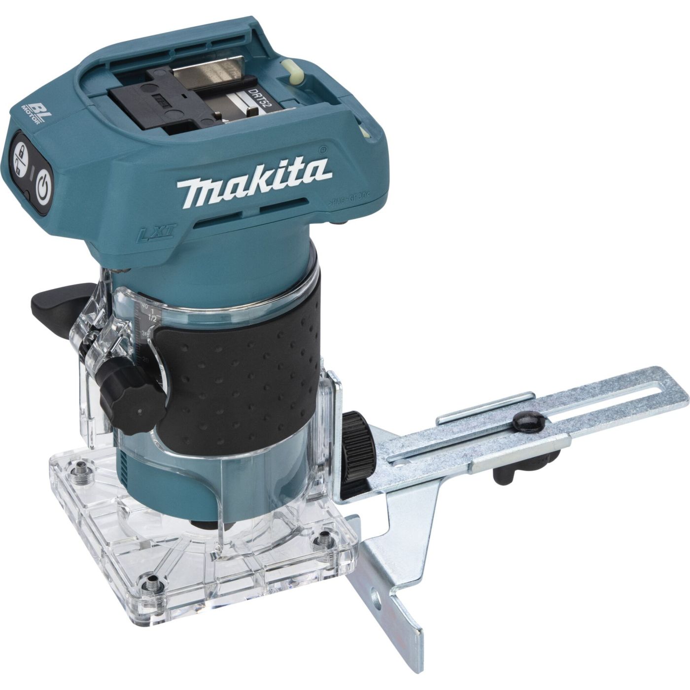 DRT52 je učinkovita 18 V LXT bežična glodalica s motorom bez četkica i robusnim plastičnim kućištem, idealna za stolarske radove. XPT tehnologija i poseban gumb za zaključavanje/otključavanje omogućuju sigurnu upotrebu čak i u teškim uvjetima.