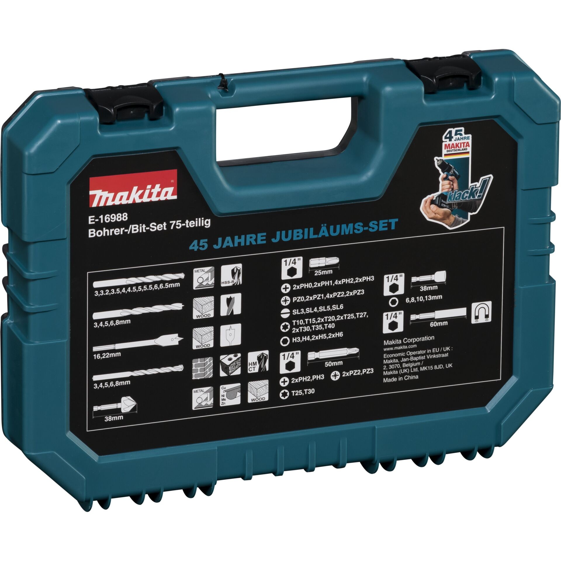 Universal 75-piece set of bits and drill bits, e.g. for wood, stone and metal.