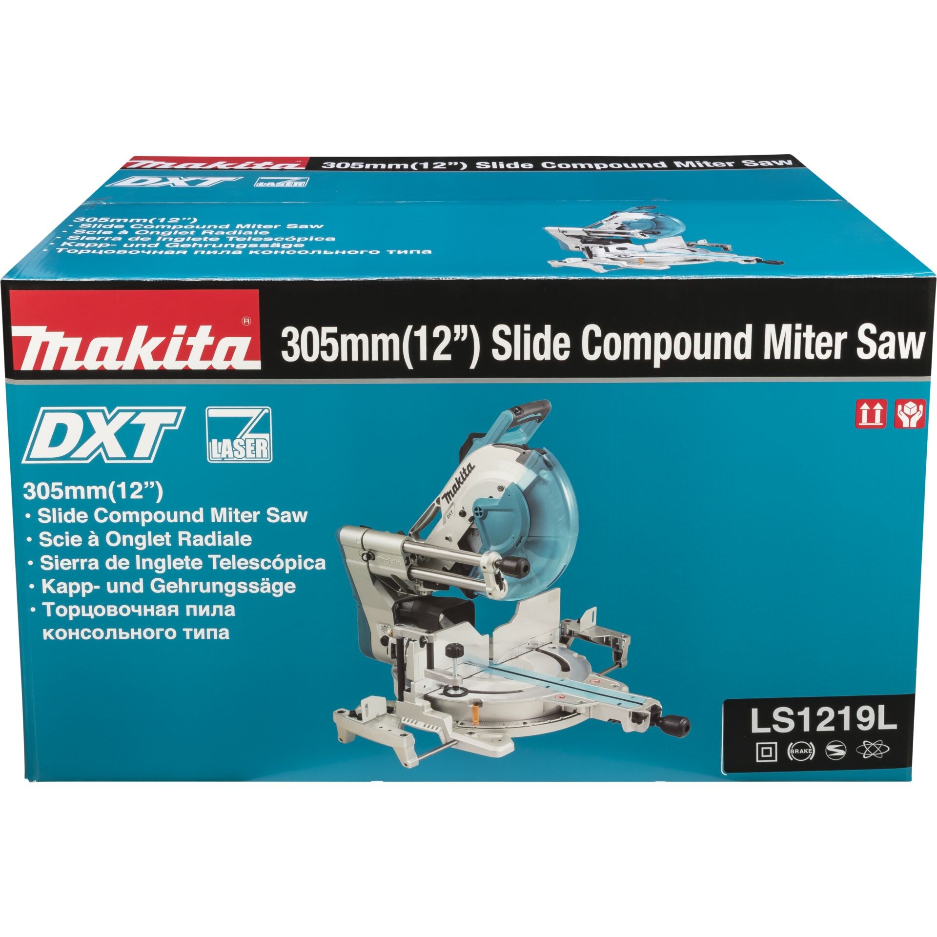 Professional chop and mitre saw with integrated laser for precise cutting line indication.