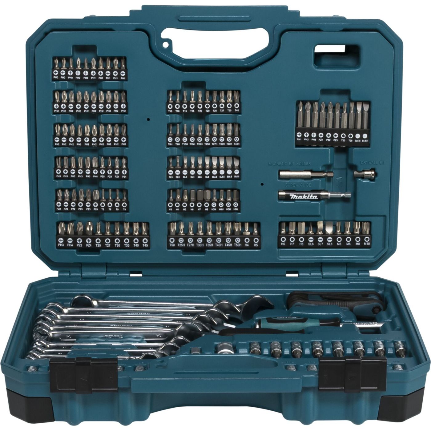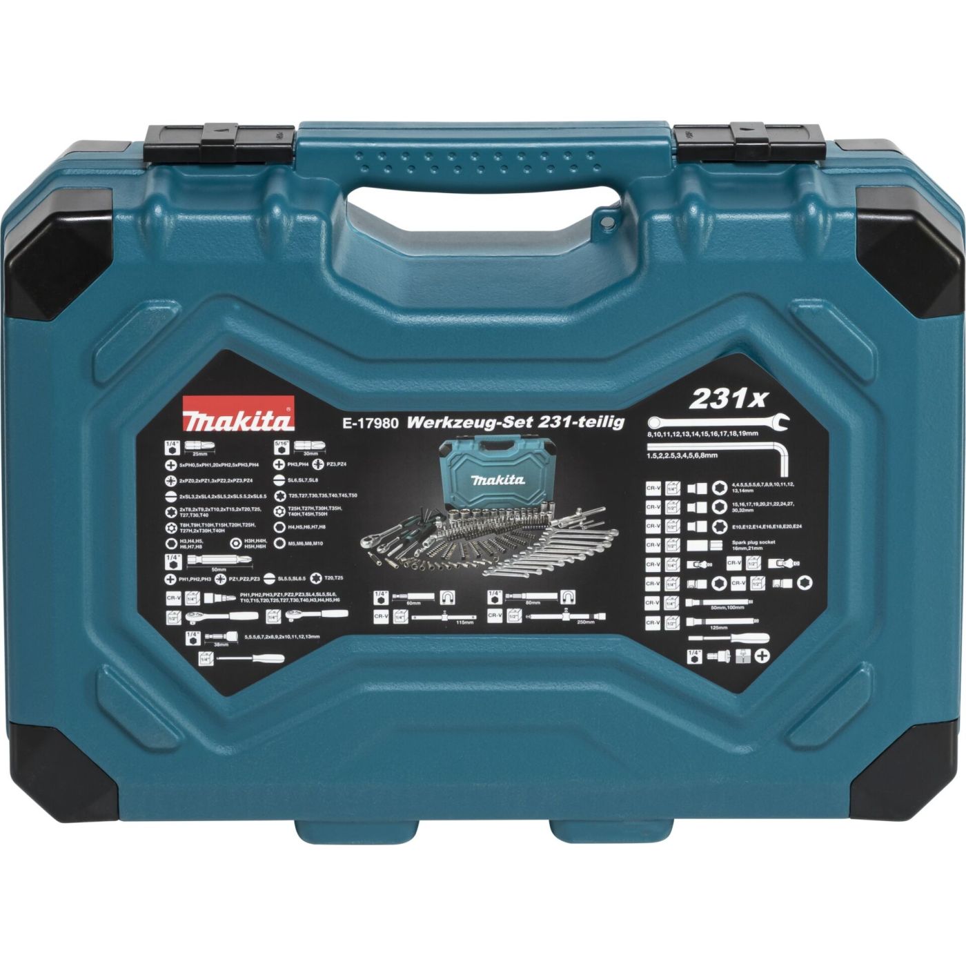Makita E-17980 set alata je opsežan set od 231 dijela, idealan za radionicu, montažu, vozila na gradilištu i kućnu upotrebu. Dolazi u dobro opskrbljenoj kutiji i nudi širok raspon alata za različite primjene. Ovaj set je savršen za entuzijaste "uradi sam" i profesionalce koji cijene kvalitetu i svestranost.