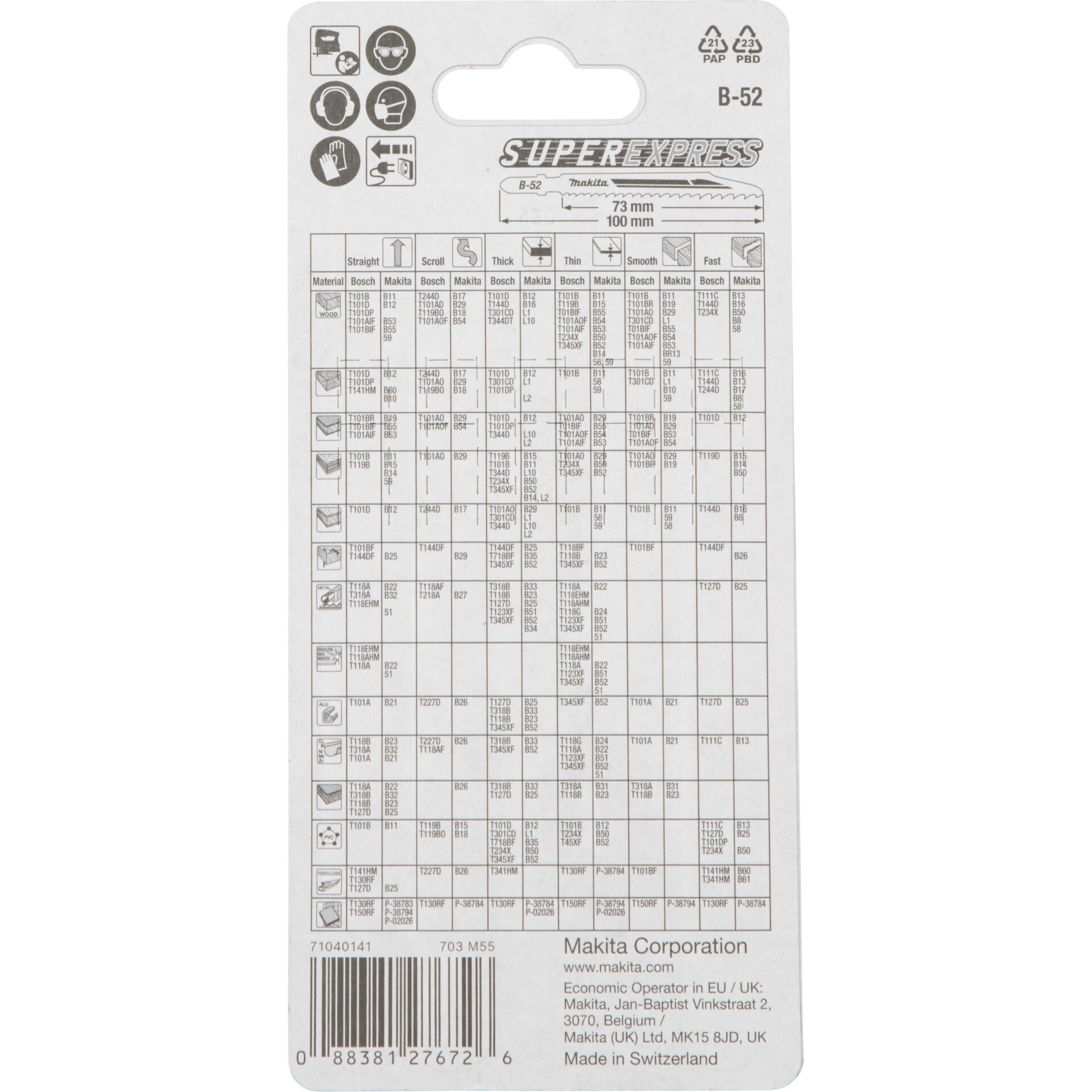 Makita Jigsaw blade B-52 Universal, 5 pieces