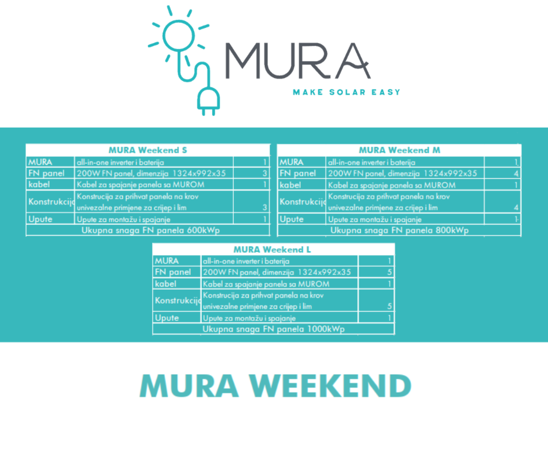 PROIZVOD SADRŽI: MURA all-in-one inverter i baterija + FN PANELI 3 kom