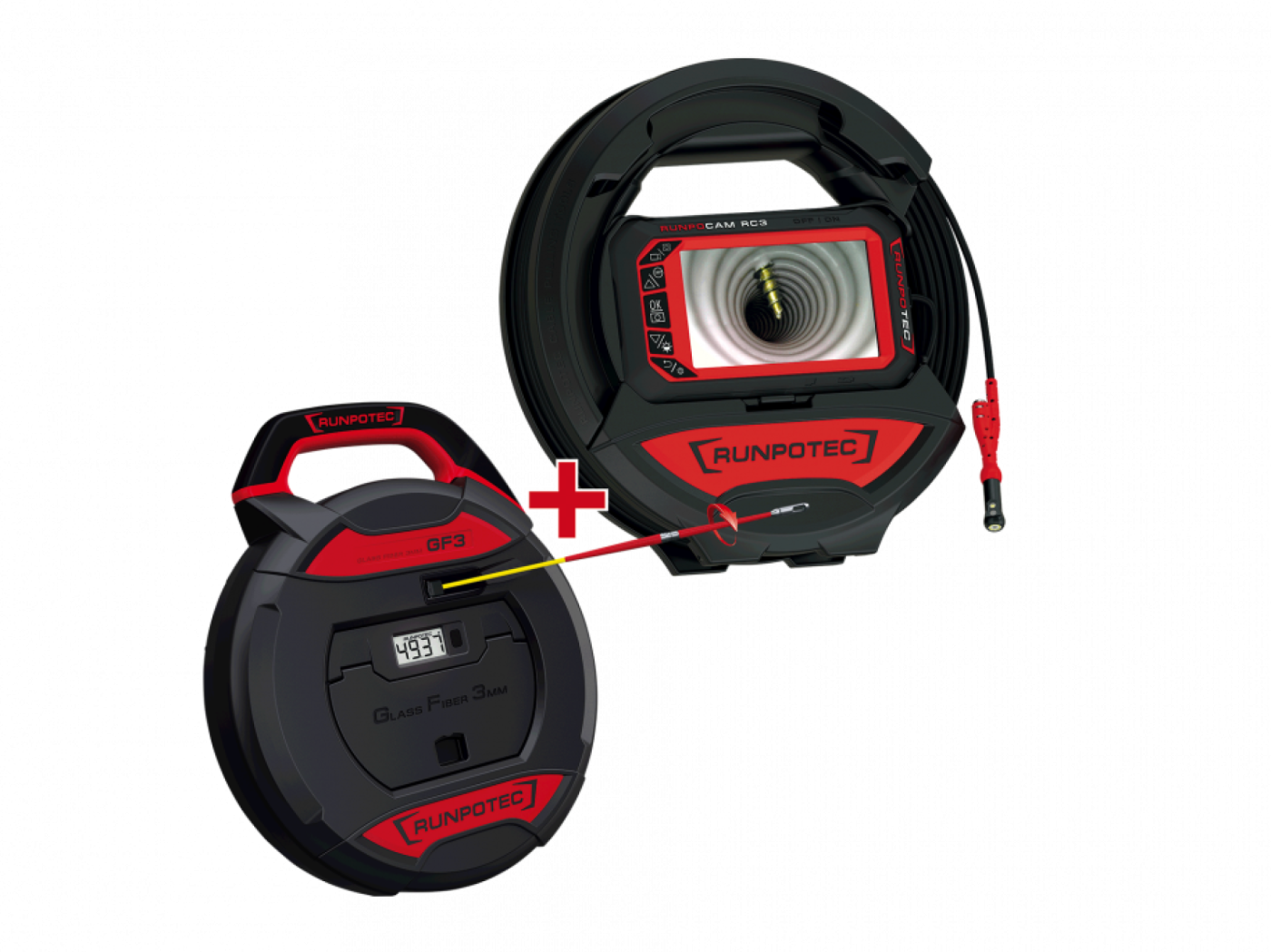 RC3 Digitalna inspekcijska kamera za cijevi - 15 m kabel s kamerom + GF3 Stakloplastična šipka s digitalnim brojačem metara – 30 m