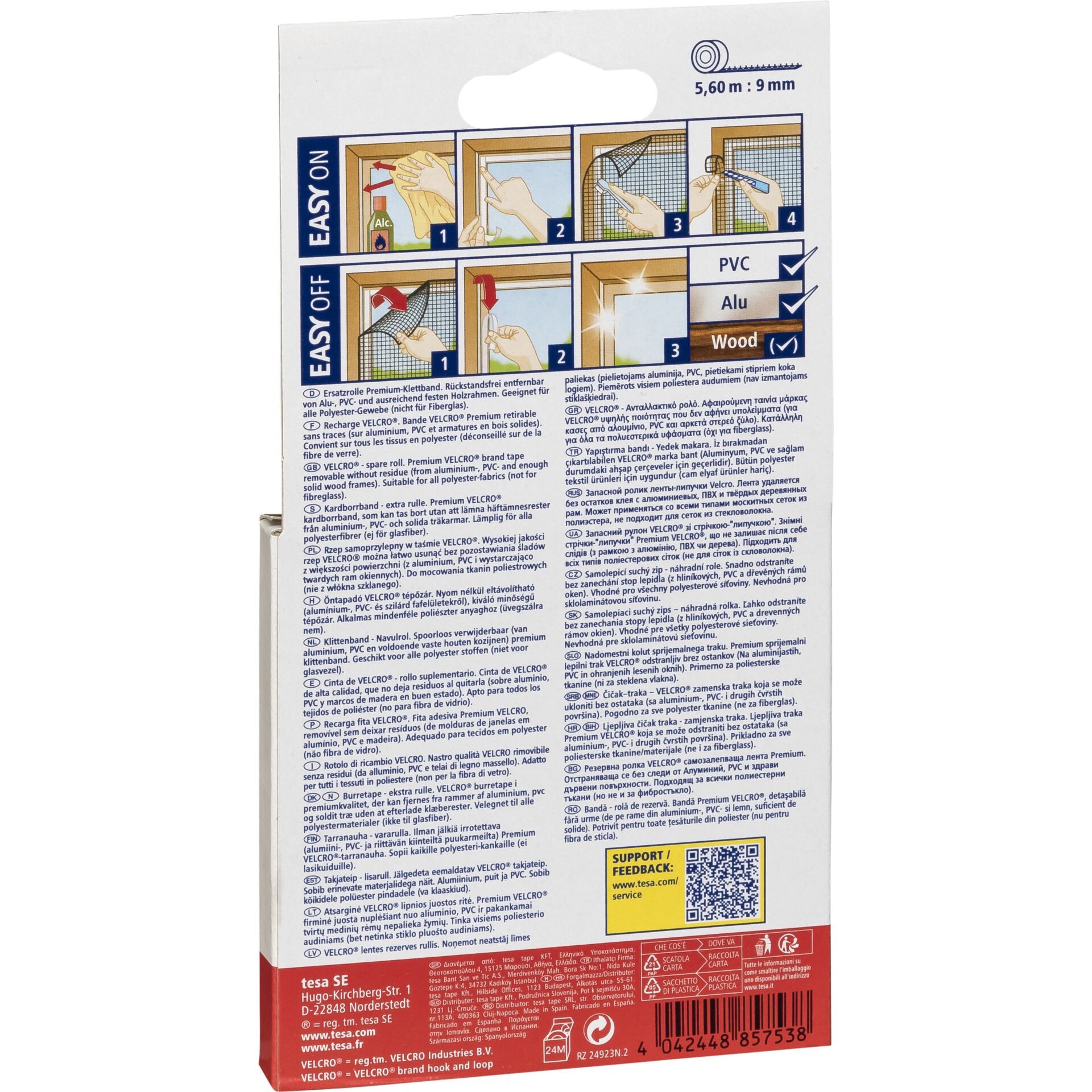 With the self-adhesive Comfort hook-and-loop tape, you can replace tesa Insect Stop fly screens without tools. The hook-and-loop tape allows for easy and secure attachment to window frames made of aluminium, PVC, or wood. Thanks to the proven tesa adhesive technology, it holds reliably and can be removed without leaving any residue if necessary. For optimal adhesion, you should thoroughly clean the surface before application.