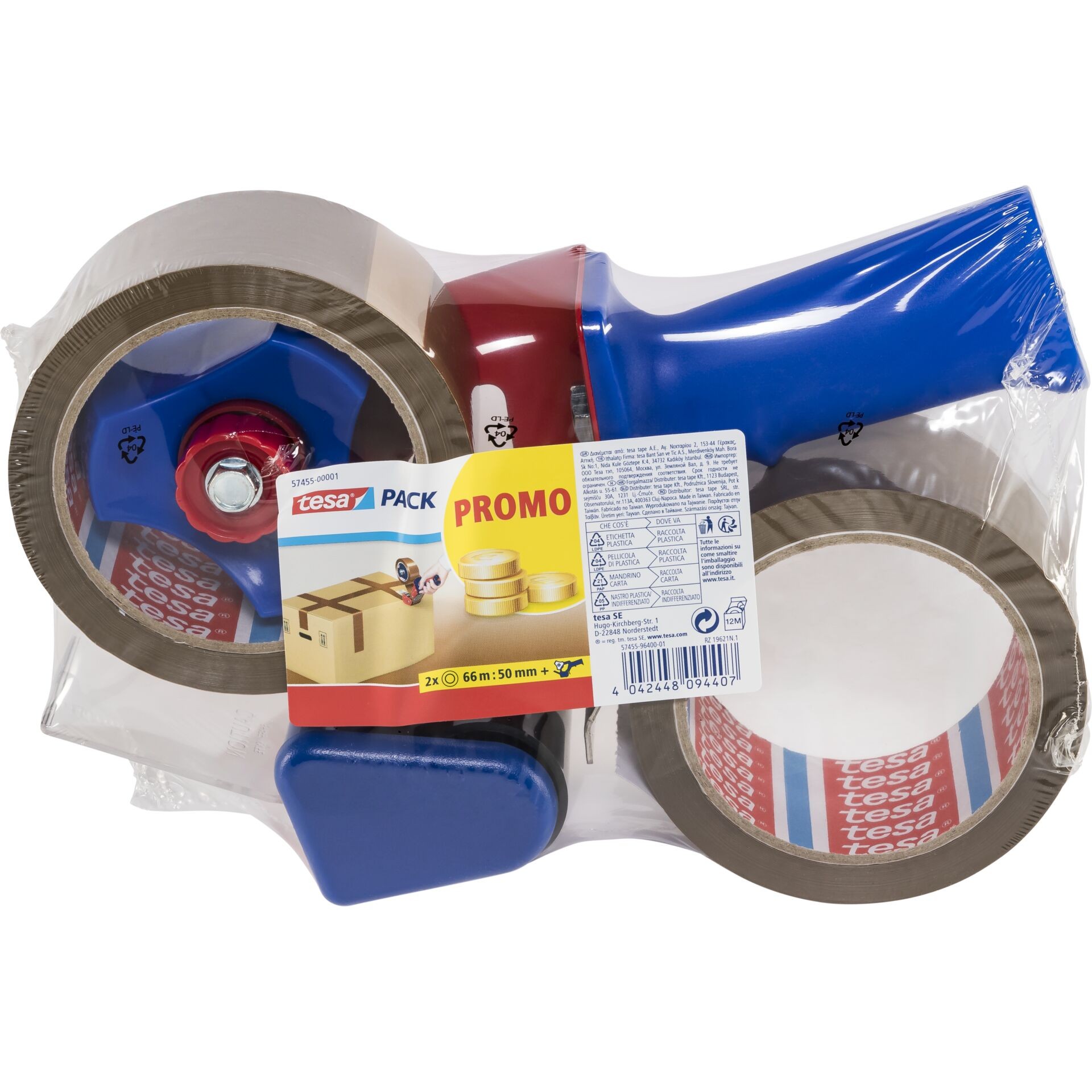 Tesa Tesapack dispenser Promo incl. 2 packing tapes (66 m x 50 mm, brown)