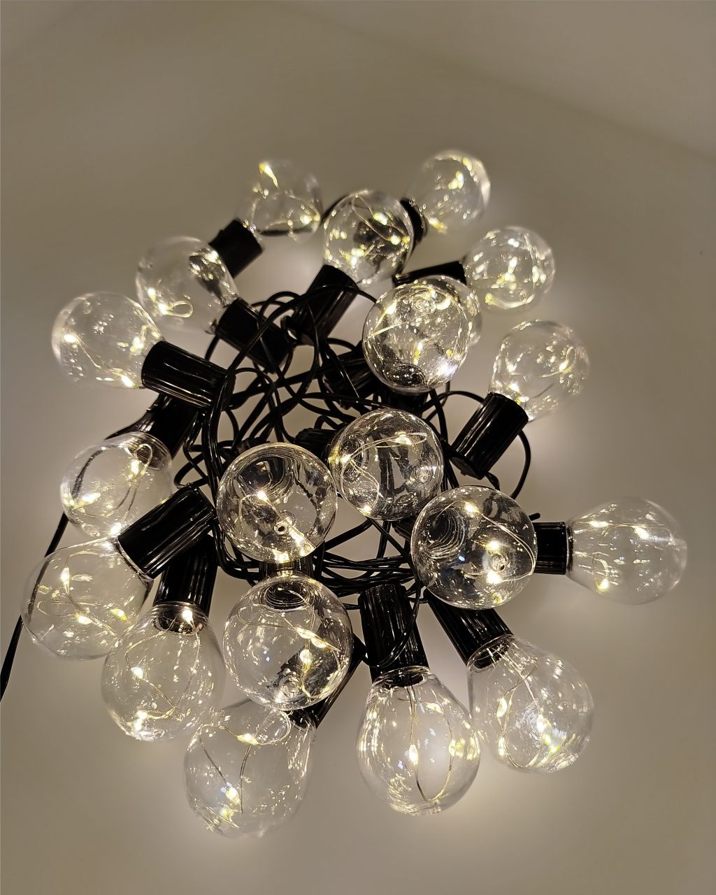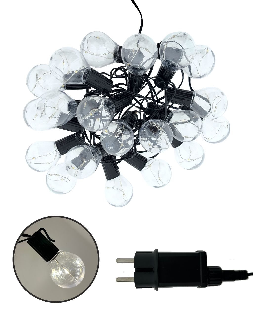 • Ovaj svjetlosni lanac sadrži 20 elegantnih žarulja , od kojih svaka sadrži 3 toplo bijele LED diode (2700K) - ukupno 60 LED dioda na ukupnoj duljini od 5,8 metara.