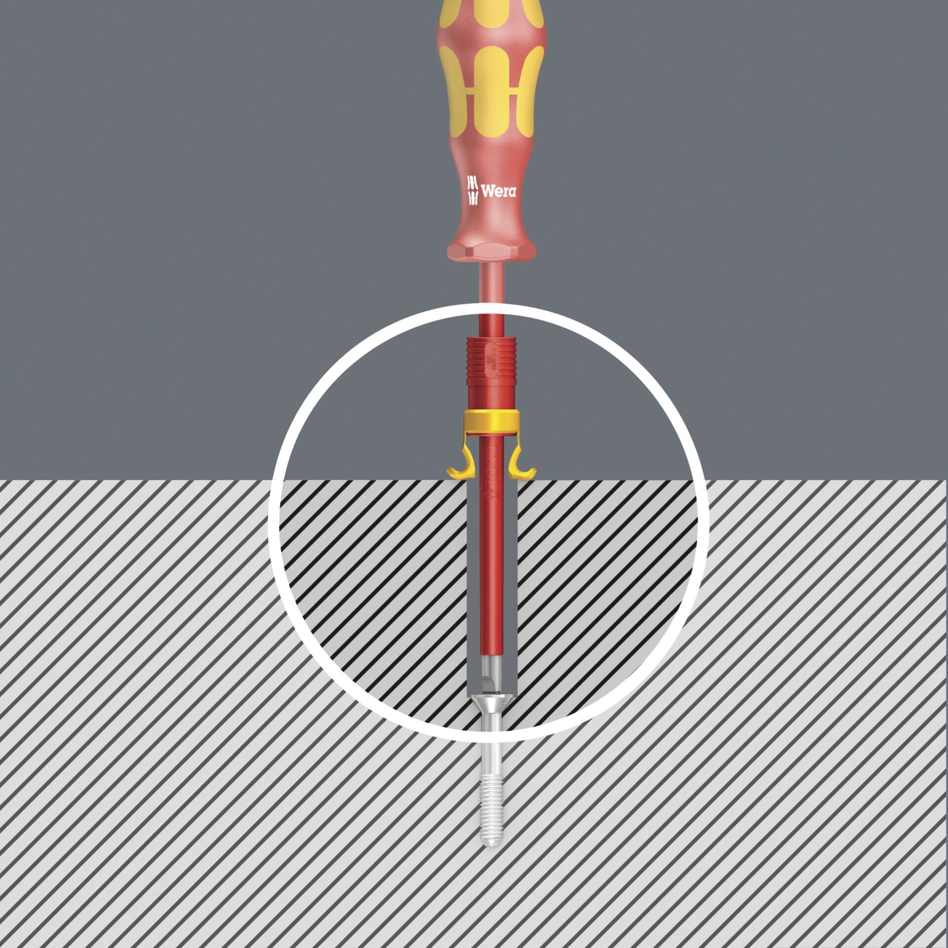 Screw gripper set: attachment tool with holding function for screws. Holds all screw profiles securely on the tool. During the job, the gripper can be pushed up along the blade so that it is not in the way when working with low-lying screws.