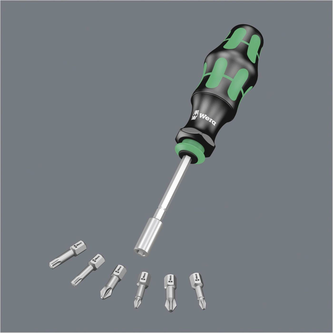Wera kompaktni alat s višekomponentnom Kraftform drškom za velike radne brzine i posebno ergonomsko uvrtanje vijaka, integrirani spremnik za bitove u dršci za pohranu 6 bitova,