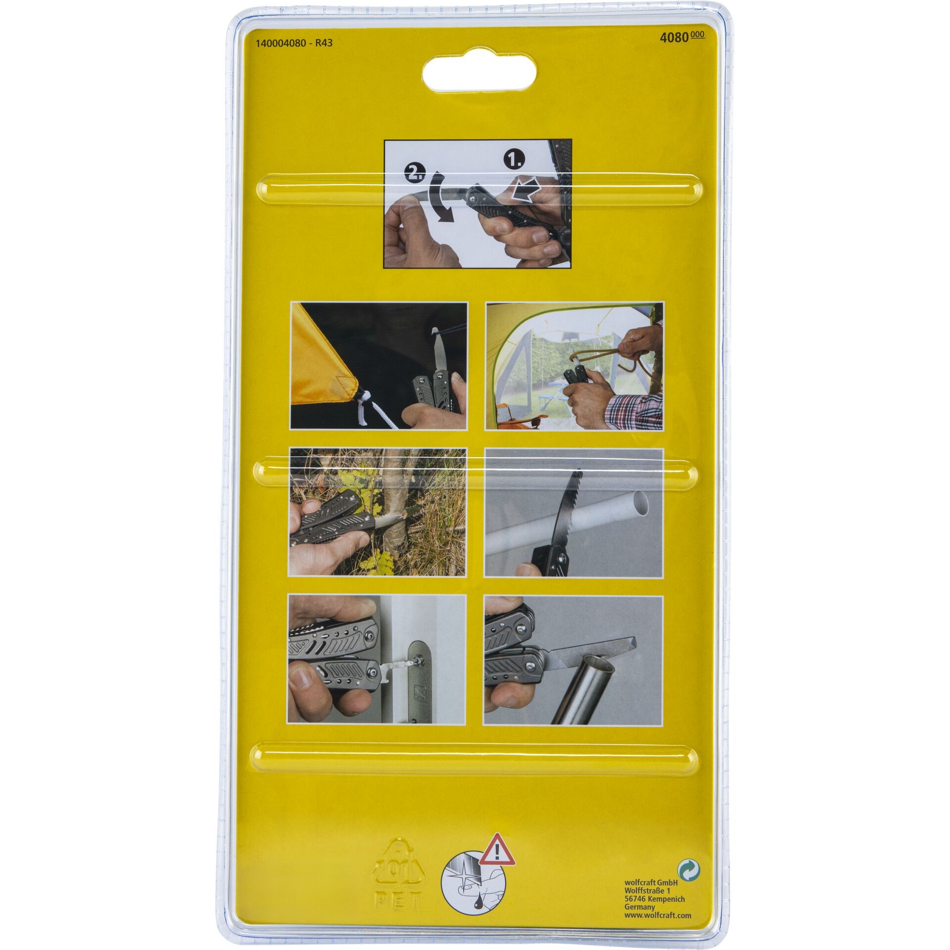 The Wolfcraft Multitool is a versatile 13-in-1 tool that is ideal for hobbies, DIY, camping and travelling. It includes needle-nose pliers, combination pliers, wire cutters, knife blade, reamer, screwdriver, saw and a double-sided file for wood and metal. Thanks to the high-quality metal design with locking and unlocking function, it offers safe handling and comes with a practical nylon pouch with belt loop.