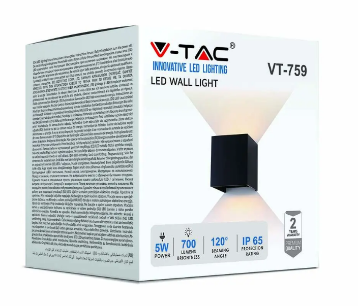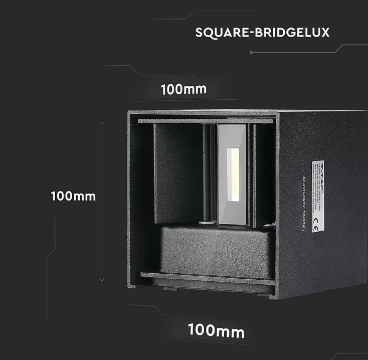 Zidna lampa 5W četvrtasta BRIDGELUX čip 4000K - IP65 - crna