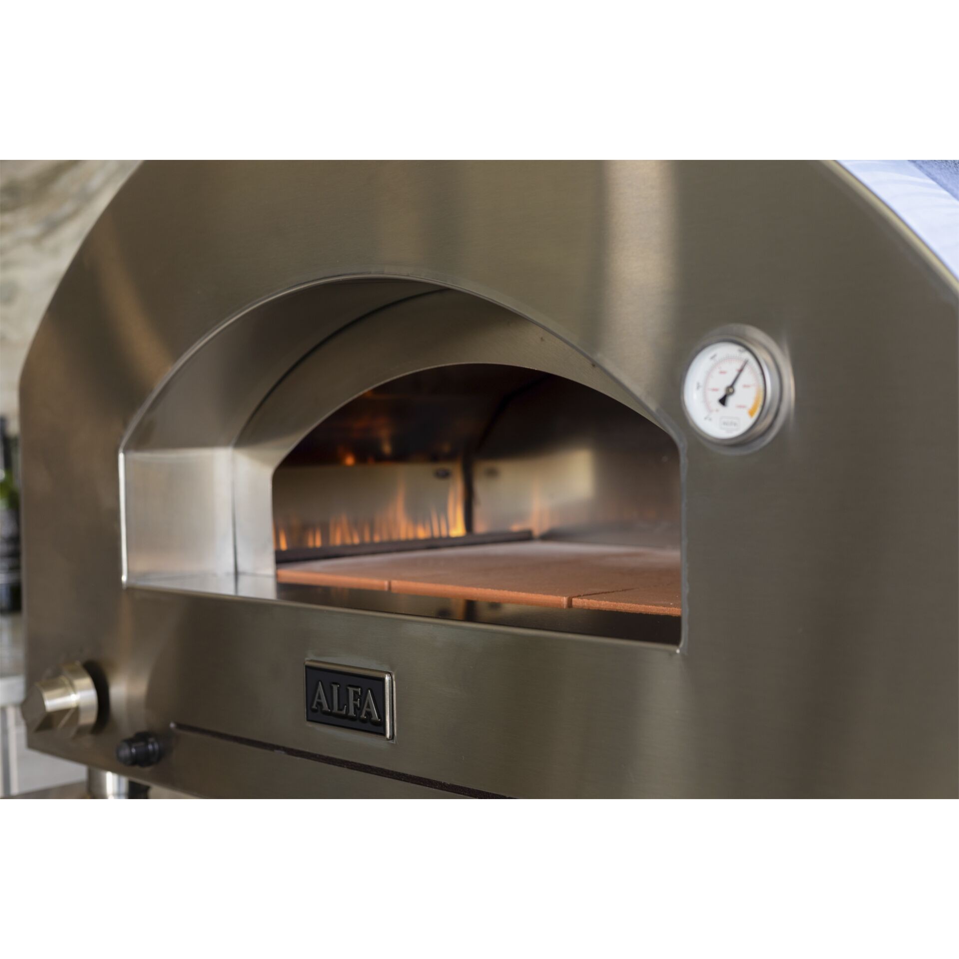2-Pizze iz linije Futuro standardno je opremljen plinskim loženjem, iako se kulinarske mogućnosti mogu udvostručiti pretvaranjem u peć na drva s Hybrid Kitom od Alfe,