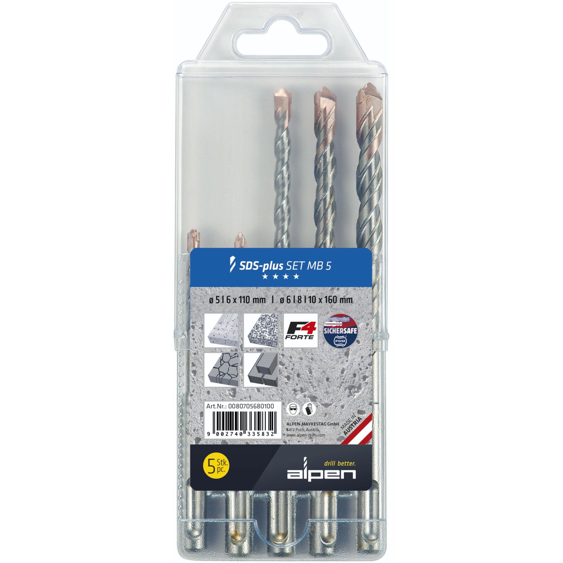 Alpen SDS-plus F4 MB5, 5 / 6 / 8 / 10 mm, duljina 110 / 160 mm