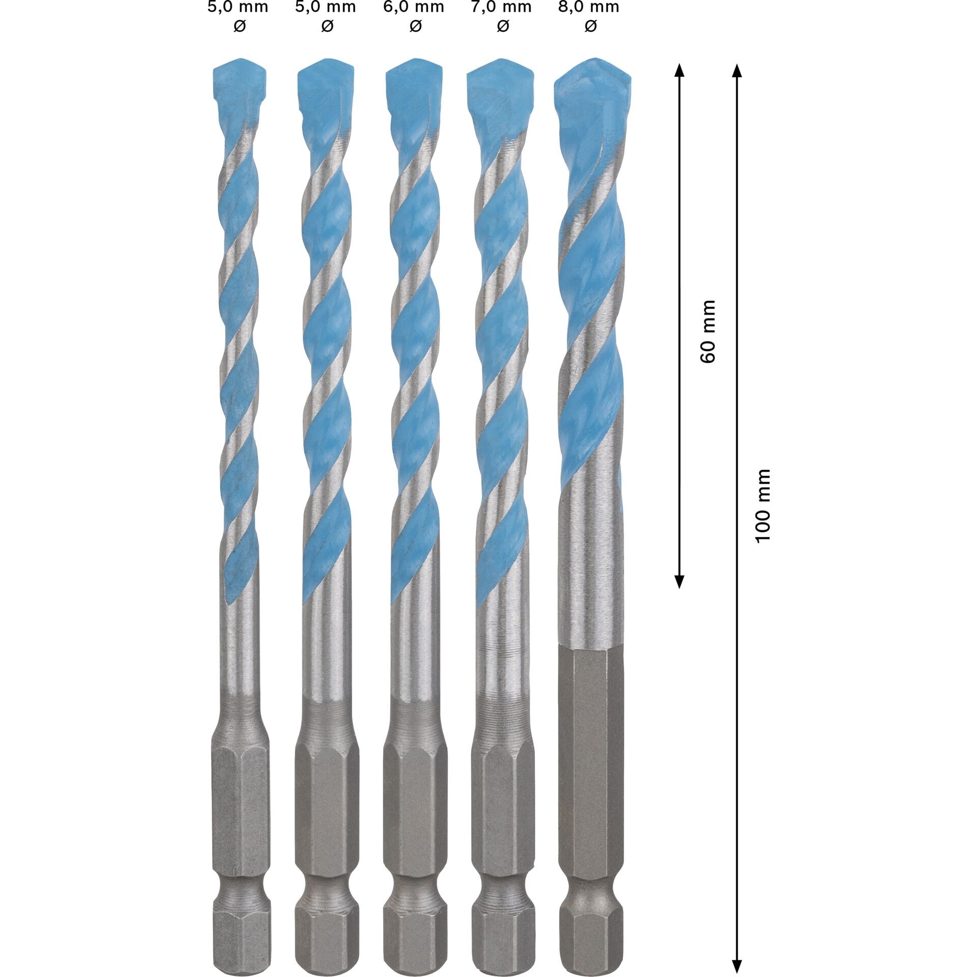 • Radna duljina: 60 / 60 / 60 / 60 / 50 mm