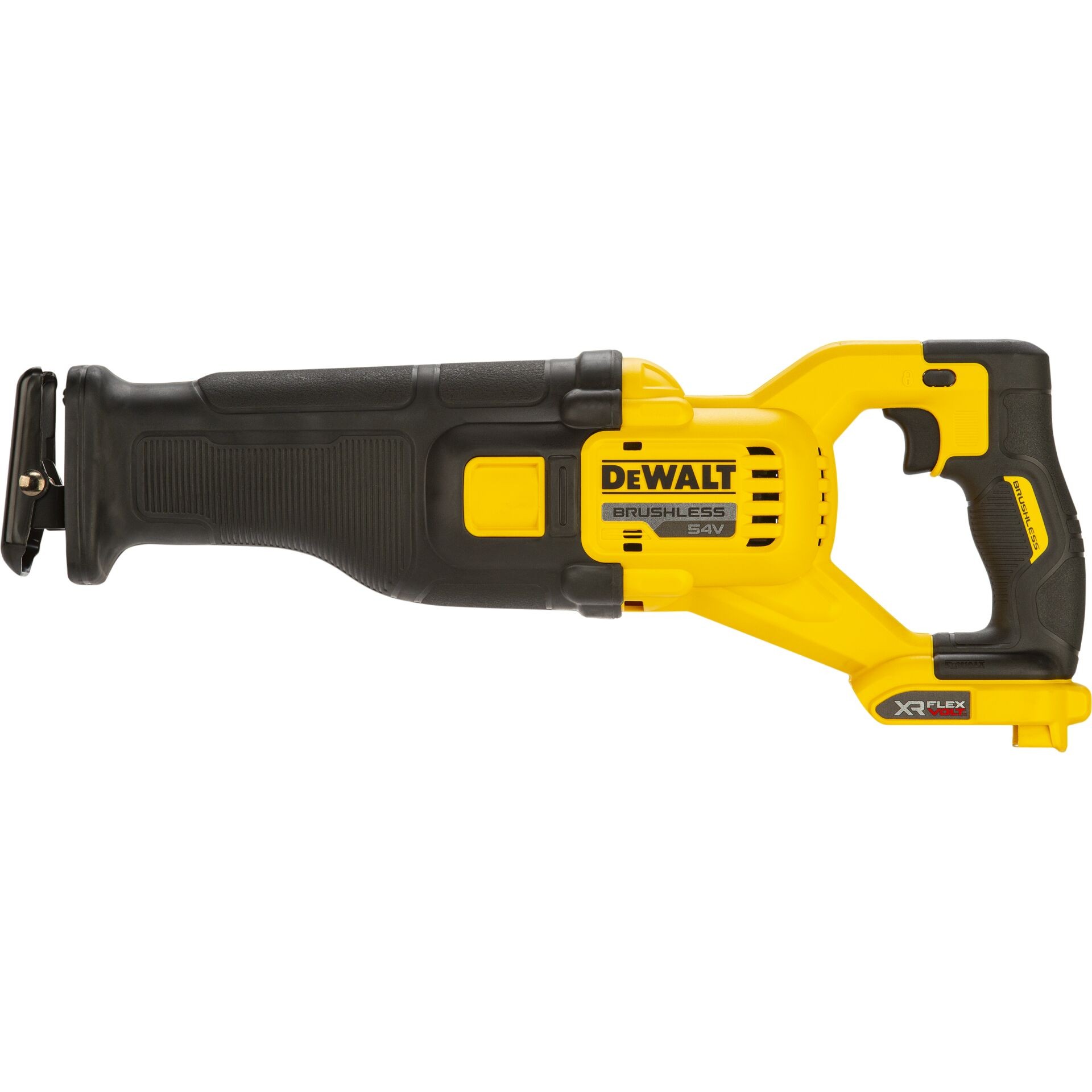 The DEWALT DCS389NT-XJ is a powerful 54 volt cordless reciprocating saw with XR FLEXVOLT technology, designed for demanding applications. It offers high power and cutting speed, ideal for wood, metal and plastic. With its ergonomic design and brushless motor, it is durable and efficient.