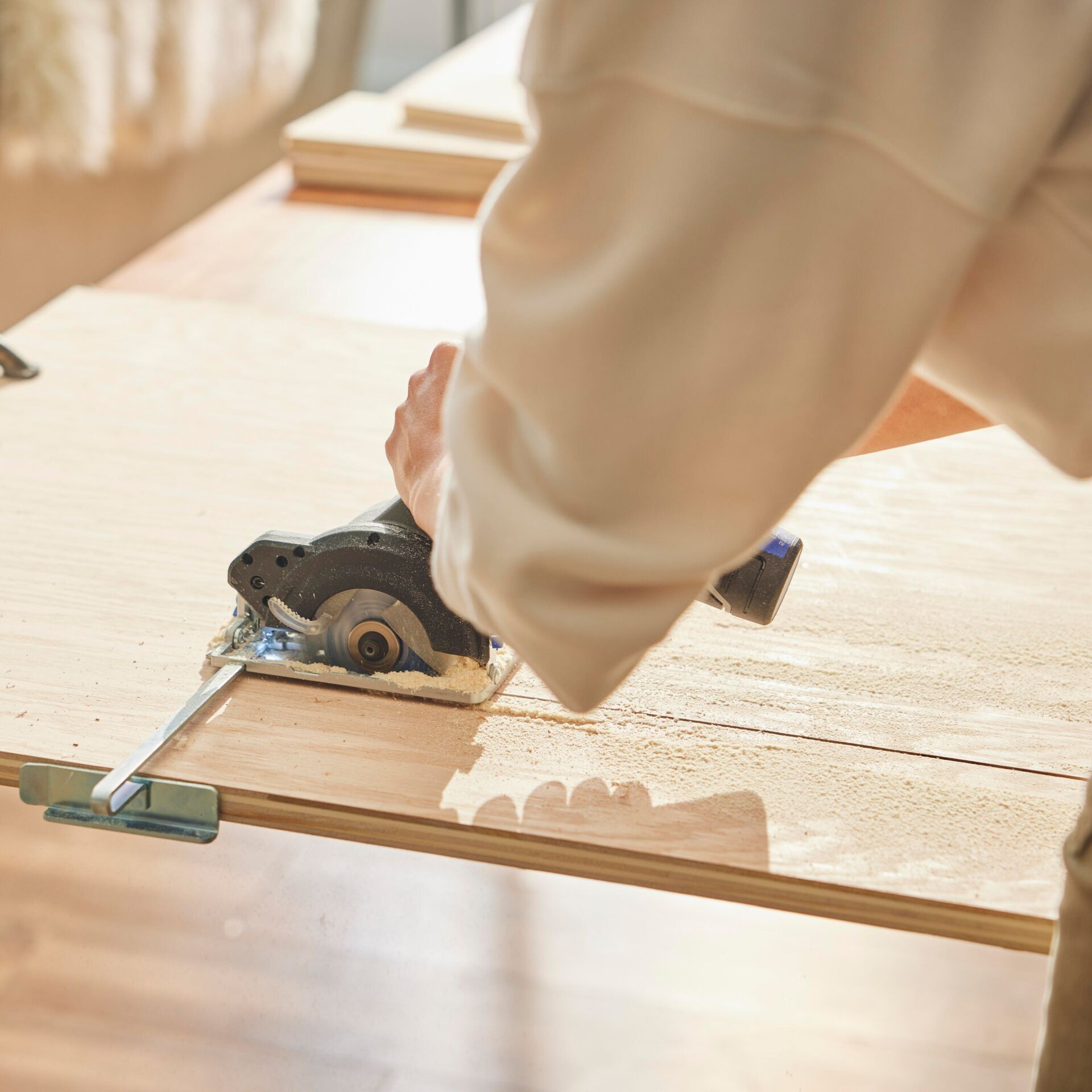 This handy compact saw is ideal for quick, clean cuts on typical DIY projects. Thanks to its compact shape, it fits comfortably in the hand and is easy to guide. The integrated laser line guidance supports precise work and reduces waste. With the 12 V battery, the saw can be used flexibly – without any cables.