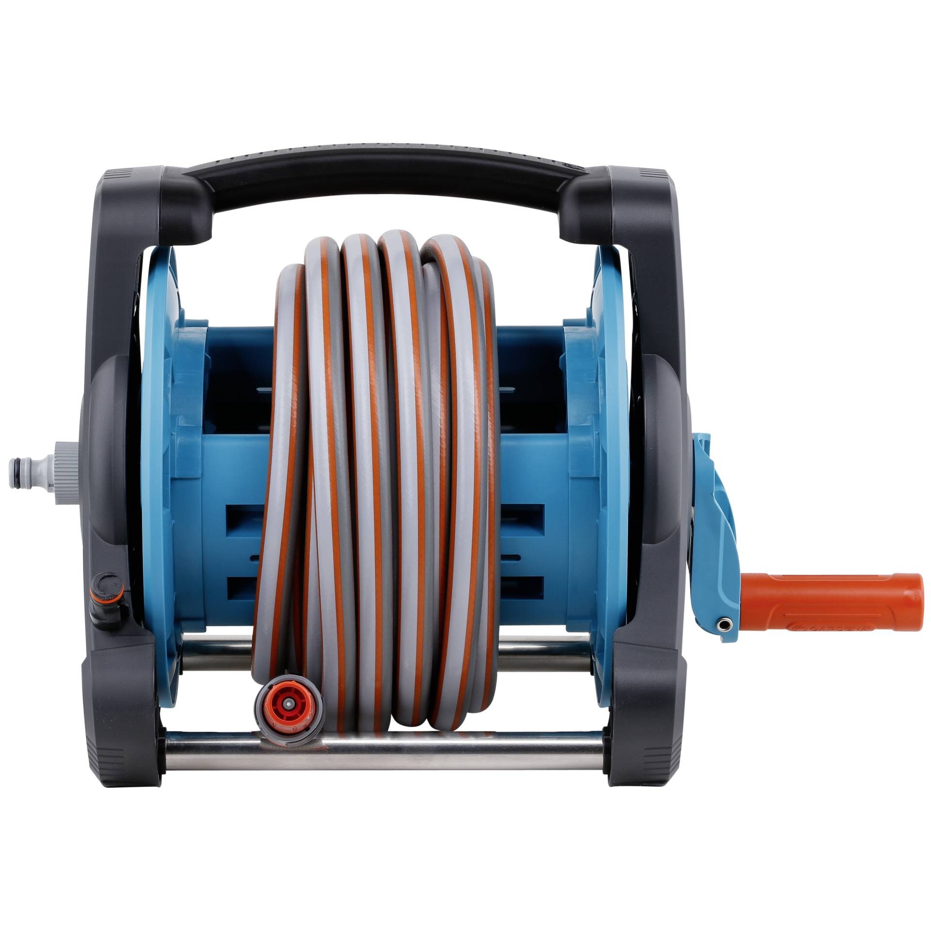 Set koluta za crijevo GARDENA Classic 10 je svestran i kompaktan. Zbog male težine jednostavan je za transport i nudi sigurno pohranjivanje crijeva. Set je potpuno sastavljen i uključuje kolut za crijevo, 10 metara dugo crijevo Classic promjera 13 mm (1/2") i sve potrebne spojnice GARDENA sustava: tri standardna priključka za crijevo (broj artikla 915), dva priključka za slavinu (broj artikla 900 i 902), zaustavljač vode (broj artikla 913), spojni dio (broj artikla 5305) i podesivu mlaznicu za raspršivanje Classic (broj artikla 8114). Stoga je idealan za vrlo male vrtove, terase ili balkone.