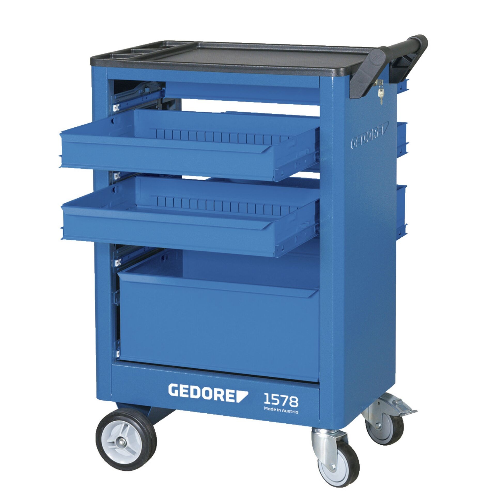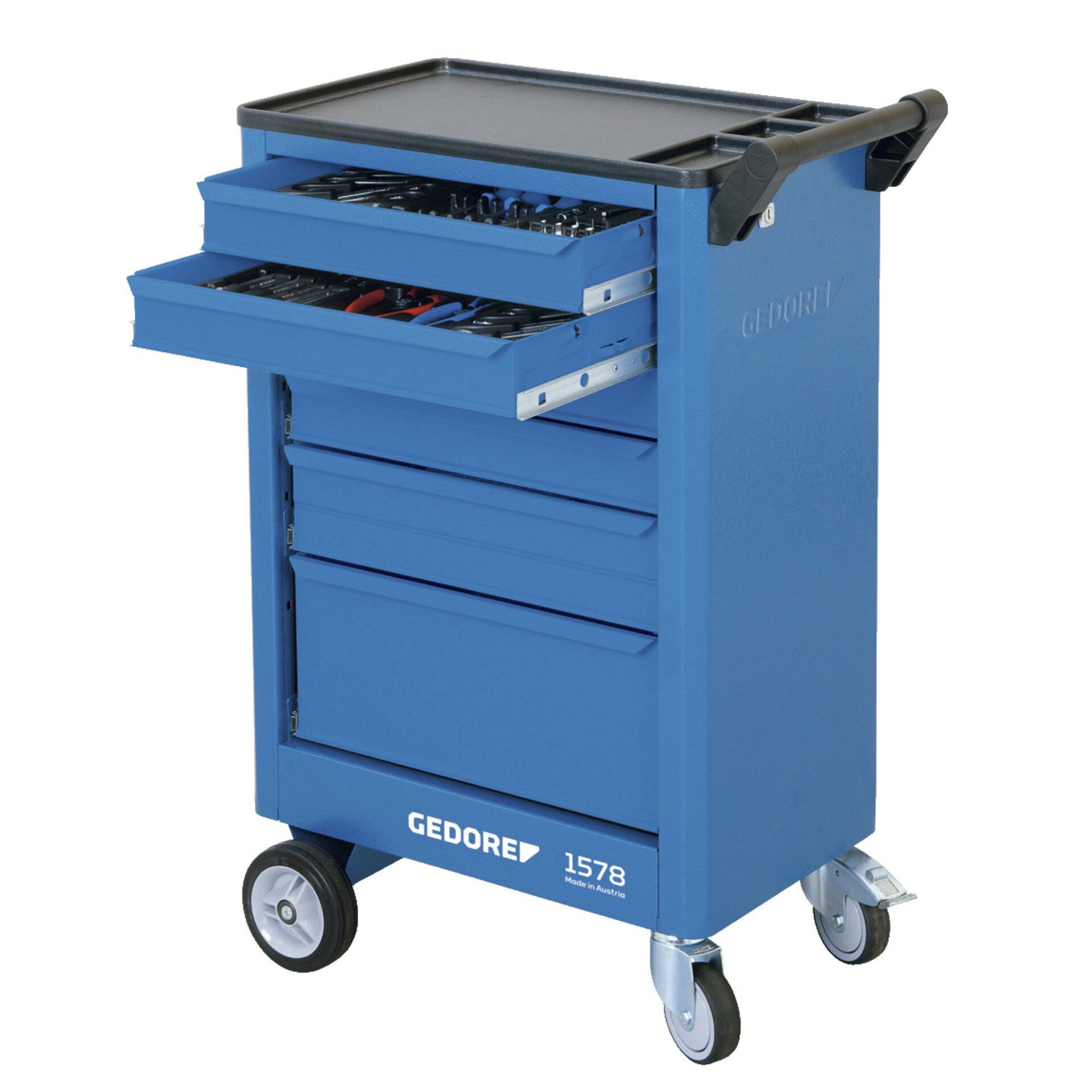 • 2 Gedore lagana kotača s kugličnim ležajevima (okretni kotači Ø 100 mm), jedan s potpunom kočnicom