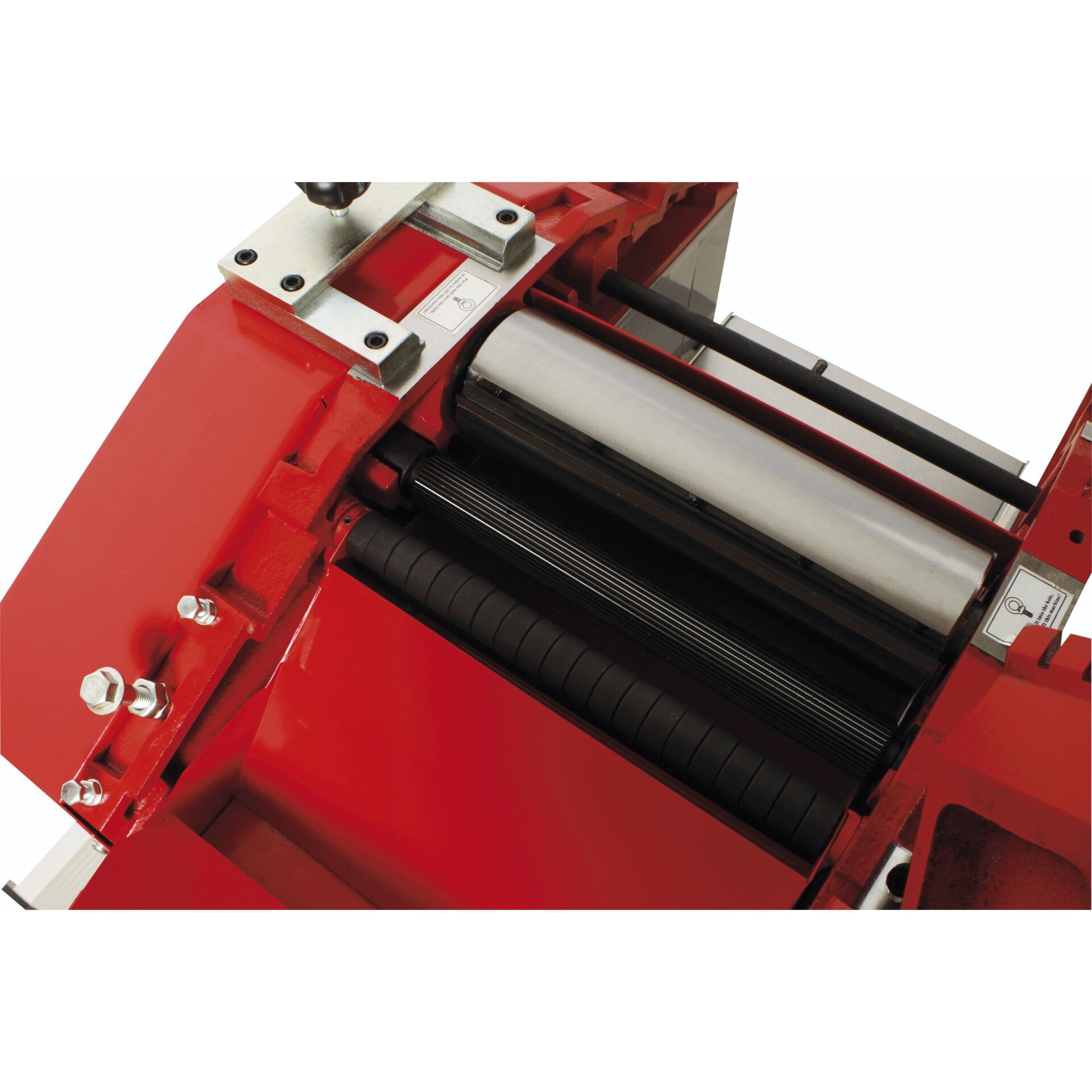 • Laterally hinged cast iron tables for comfortable thickness planing