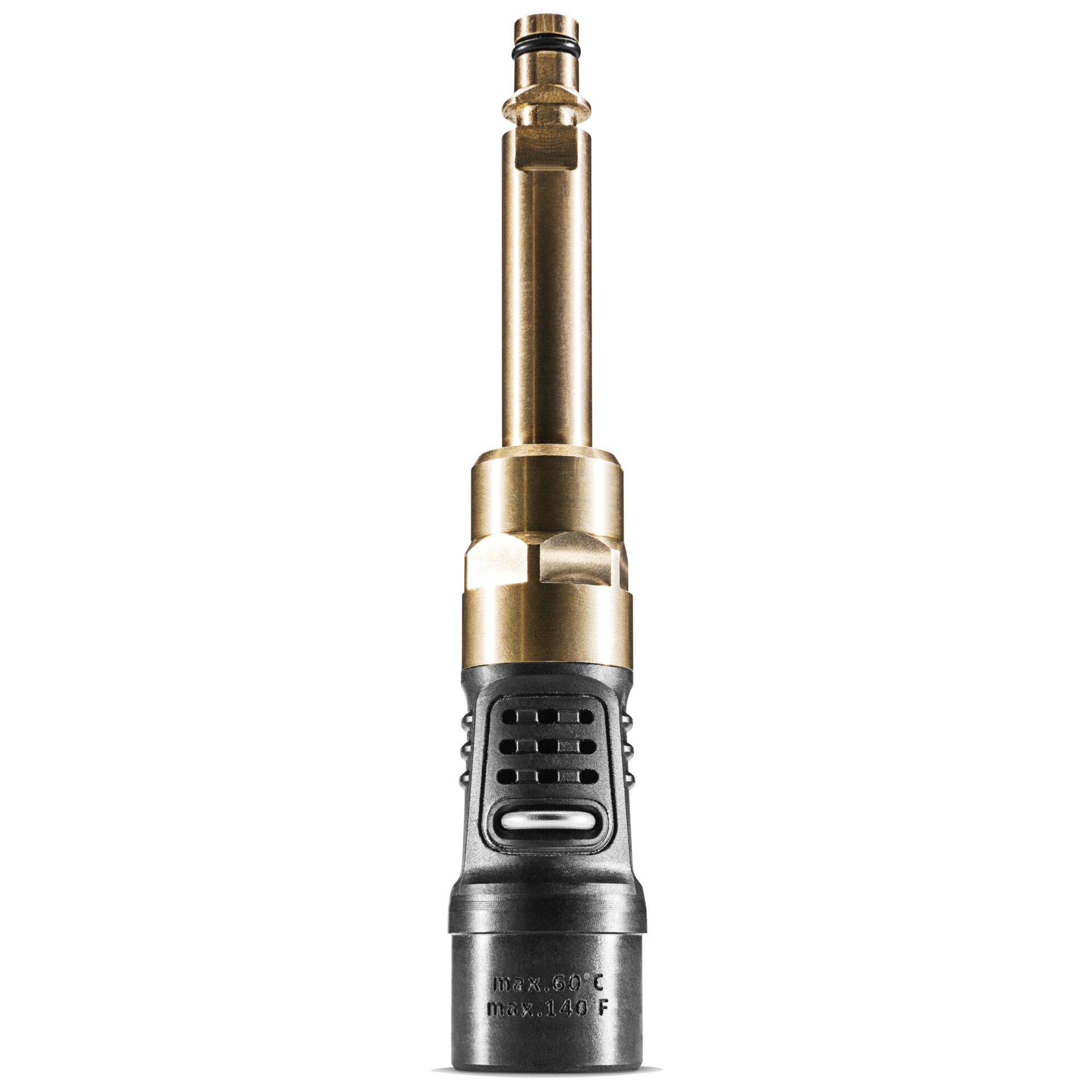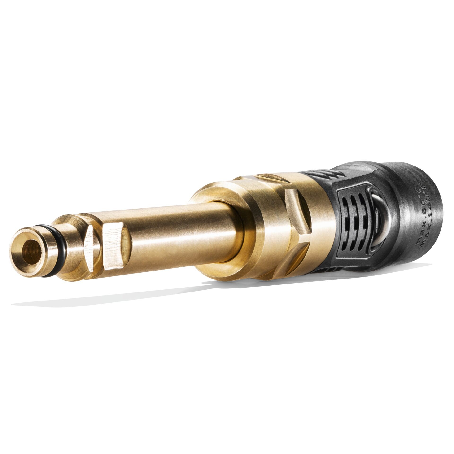 S Kärcher adapterom protiv uvrtanja uživate u većoj slobodi kretanja i udobnosti pri radu s visokotlačnim čistačem. Recite zbogom dosadnim petljama u visokotlačnom crijevu, koje mogu postati prepreka tijekom upotrebe i prepreka kada su skučene. Jednostavnim ručnim okretanjem adaptera, petlje se lako otpuštaju. Adapter se može jednostavno i brzo naknadno ugraditi kako bi se poboljšalo vaše visokotlačno crijevo. Kompatibilan je sa svim visokotlačnim crijevima s Quick Connect priključkom na strani pištolja. Izdržljiva rotacijska funkcija zahvaljujući upotrebi mesinga, pogodan za sve uređaje klase K 4 do K 7.