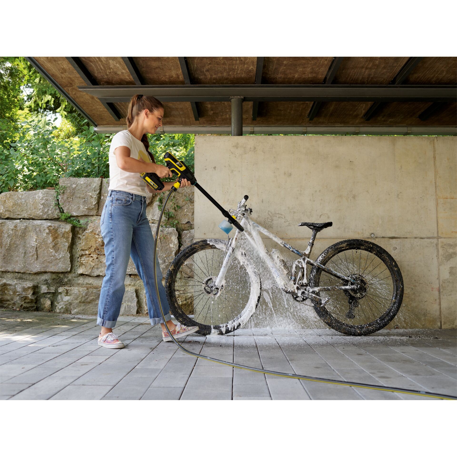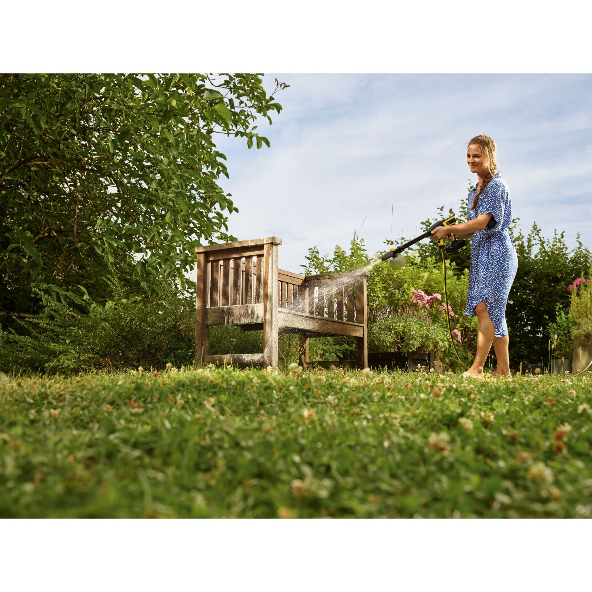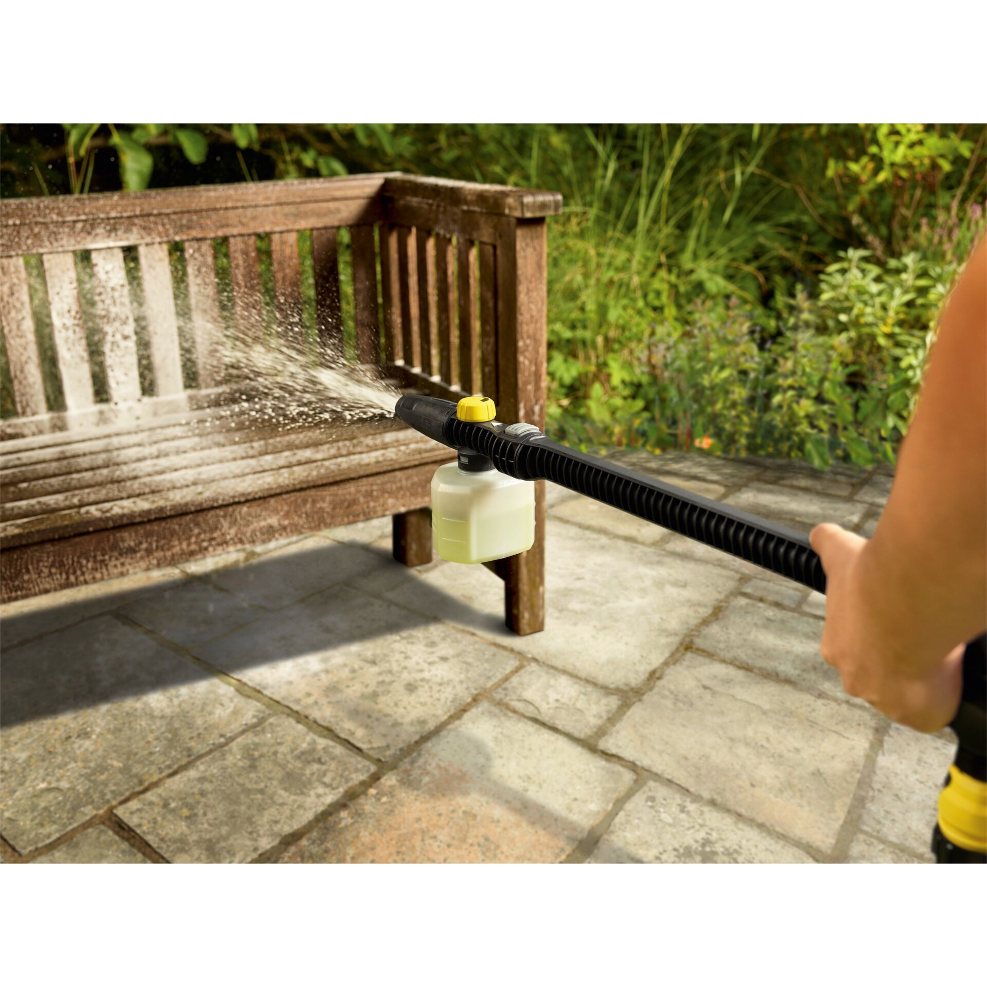 Ponekad je potrebno više od same vode da bi se postigli zaista čisti rezultati. Mlaznica za pjenu FJ 24 to čini jednostavnim. Jednostavno napunite spremnik od 0,3 litre Home & Sredstvo za čišćenje vrta, pričvrstite mlaznicu za pjenu na nastavak i spremni ste: Zahvaljujući temeljitoj pjeni i razini mlaza koja se može okretati po potrebi, sve se sada čisti s lakoćom. A zahvaljujući provjerenom sustavu Quick Connect, spoj između mlaznice za pjenu i produžne cijevi može se otpustiti samo jednom rukom tako da možete prijeći na drugi pribor. Mlaznica za pjenu FJ 24 prikladna je za modele KHB i OC 6-18, ali ne i za visokotlačne čistače od K 2 do K 7.