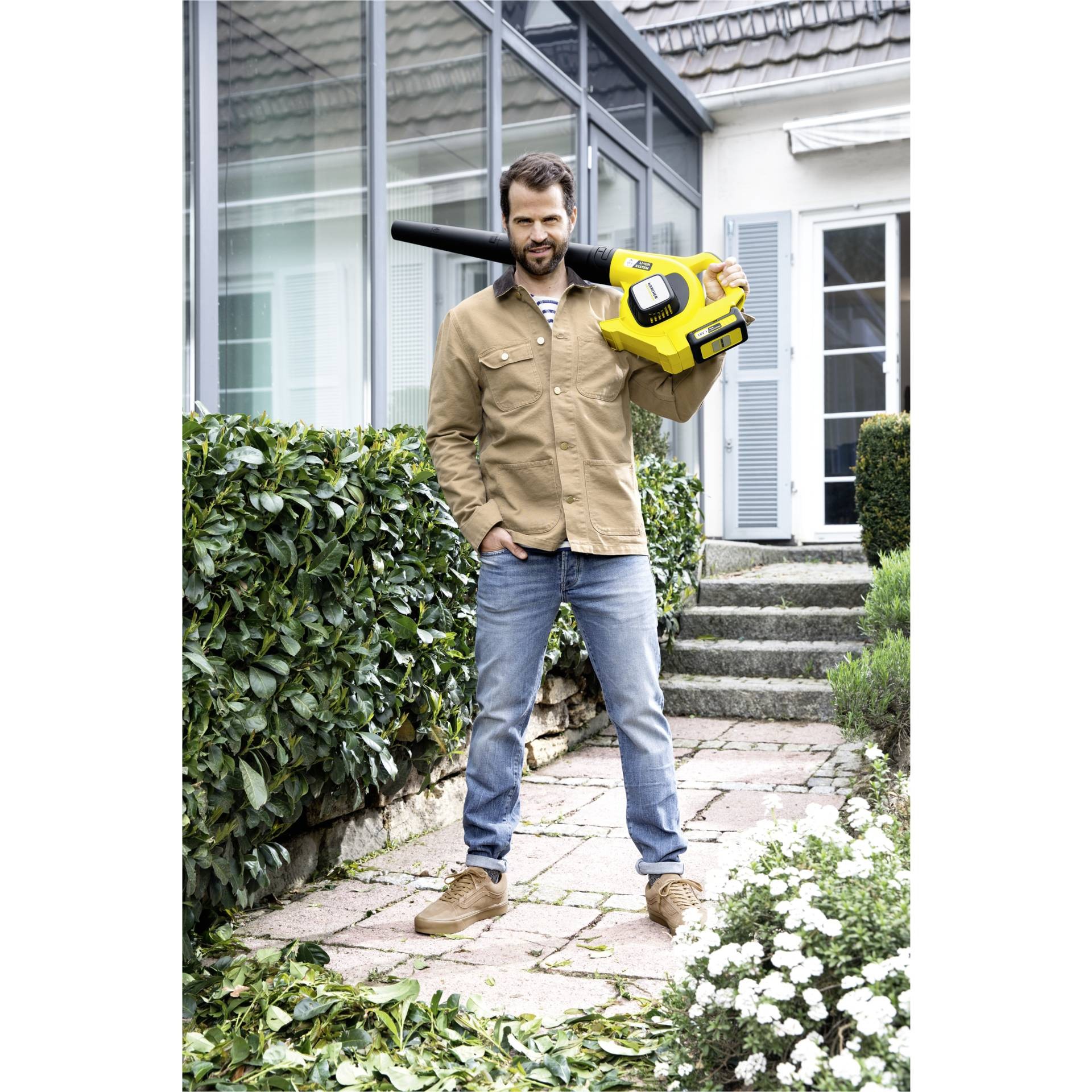 Snažan 18 V akumulatorski puhač lišća tvrtke Kärcher postiže maksimalnu brzinu zraka od 210 km/h i uvjerava ergonomskim rukovanjem i dobrom ravnotežom,