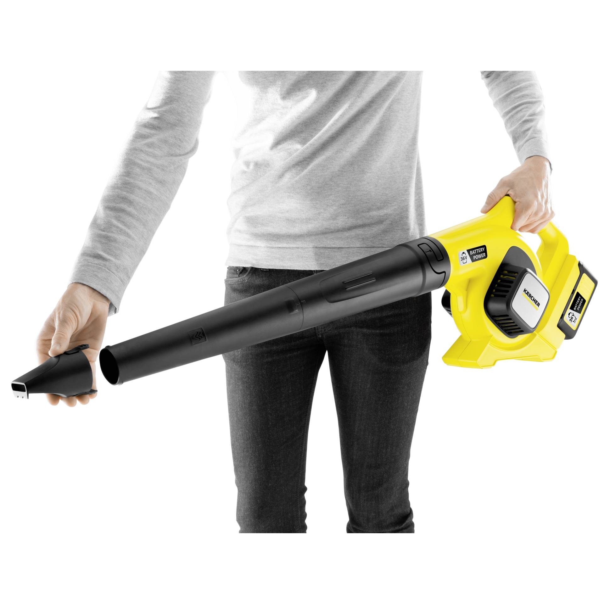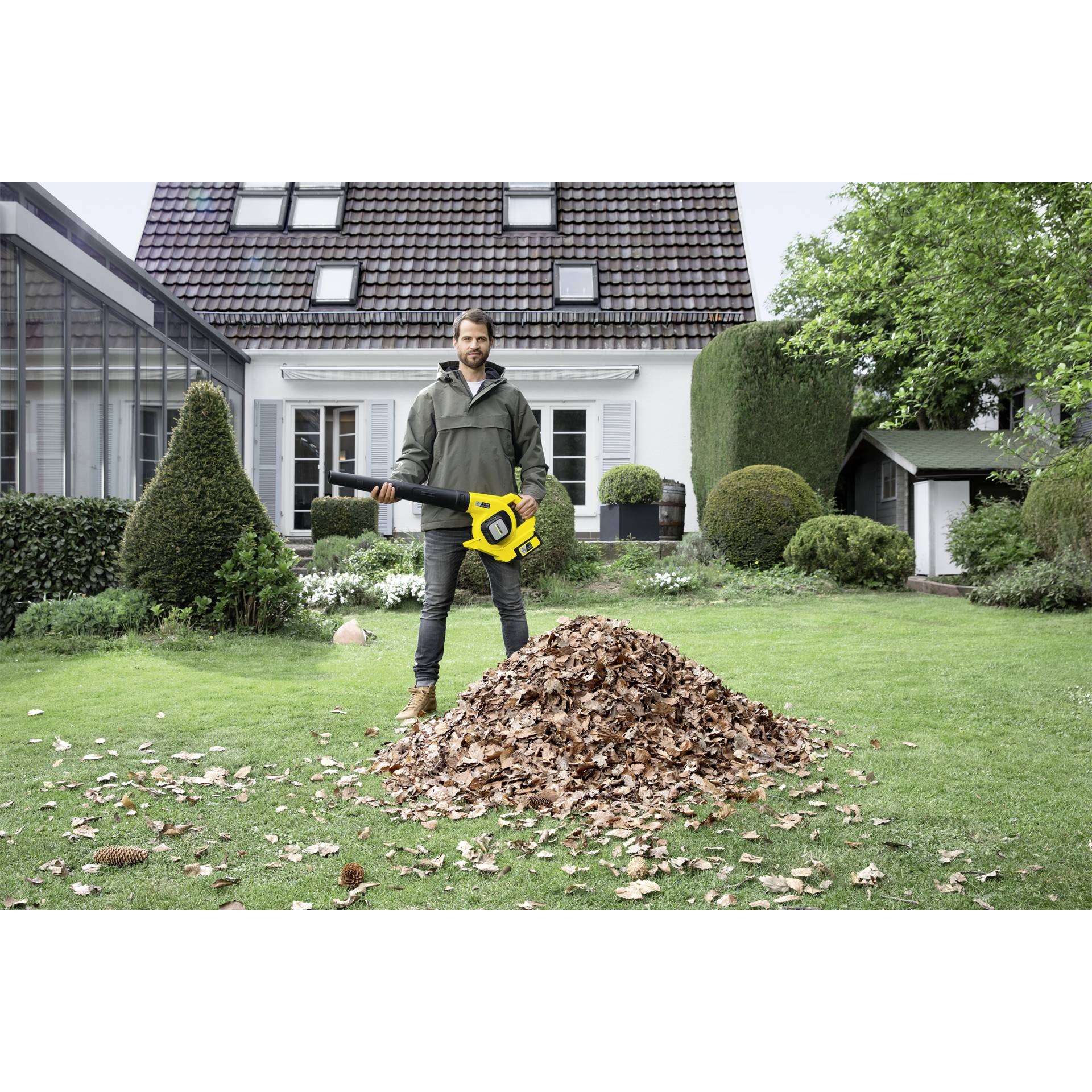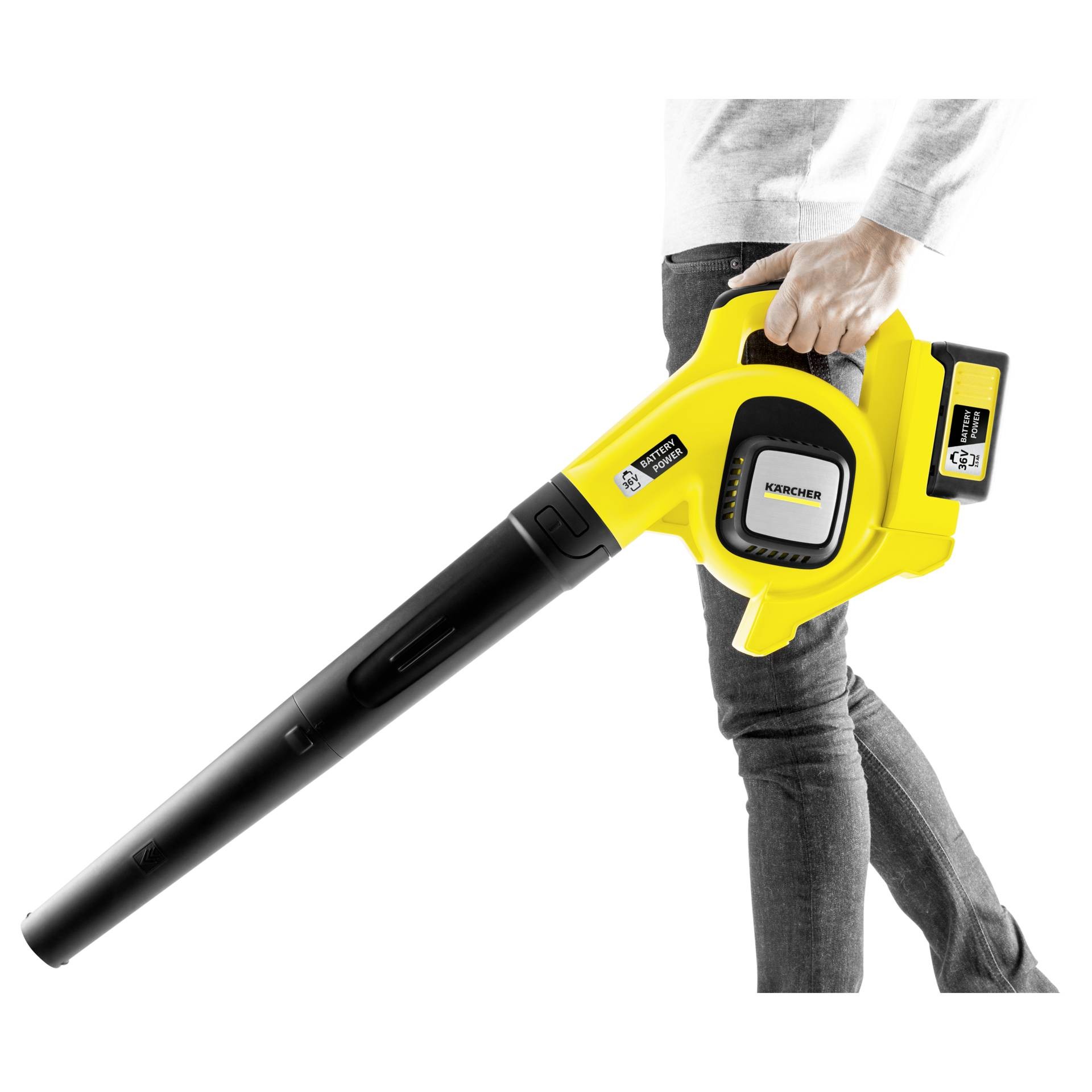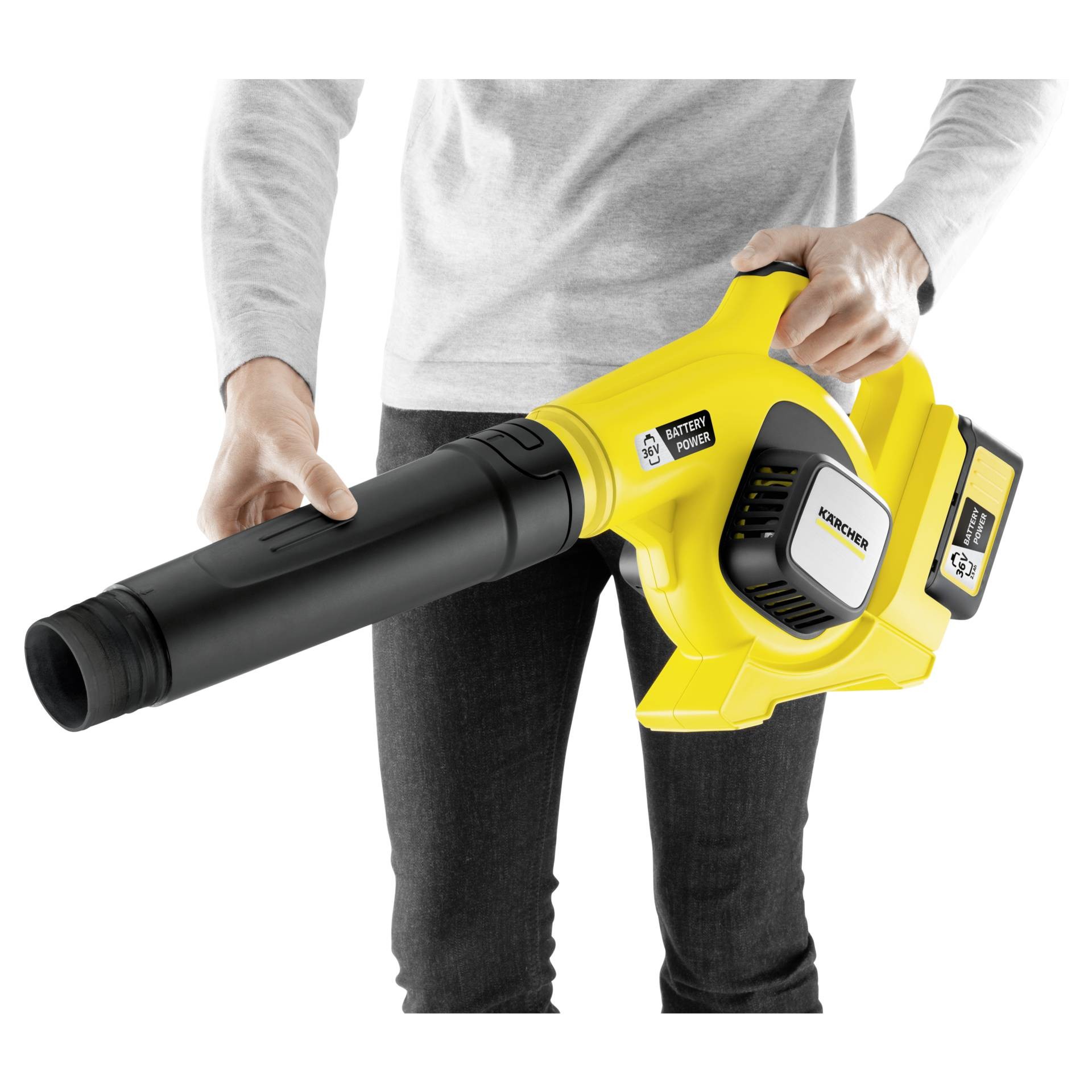 Powerful and mobile: The 36 V battery-powered leaf blower including 2-stage power regulation reaches a maximum air speed of 250 km/h.
