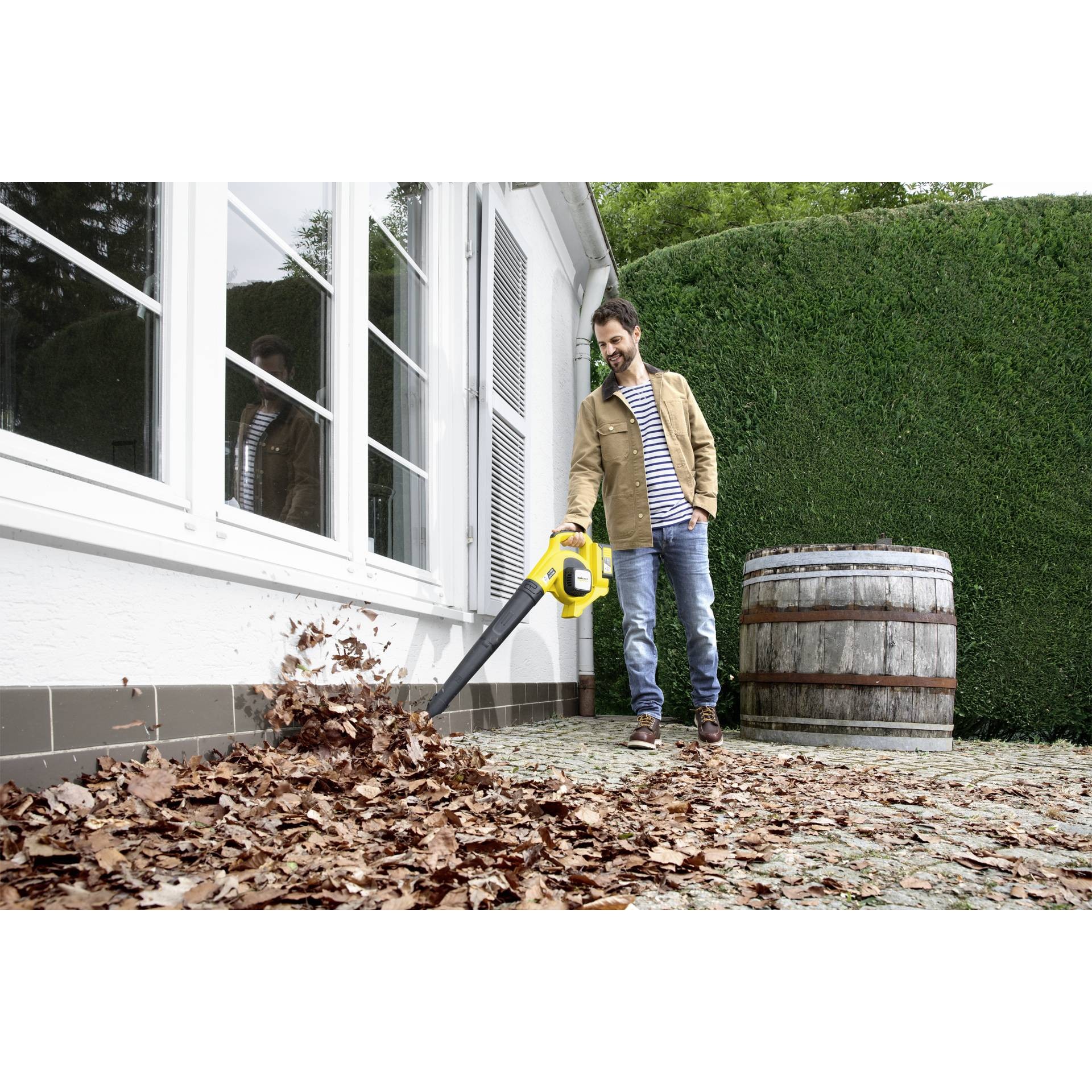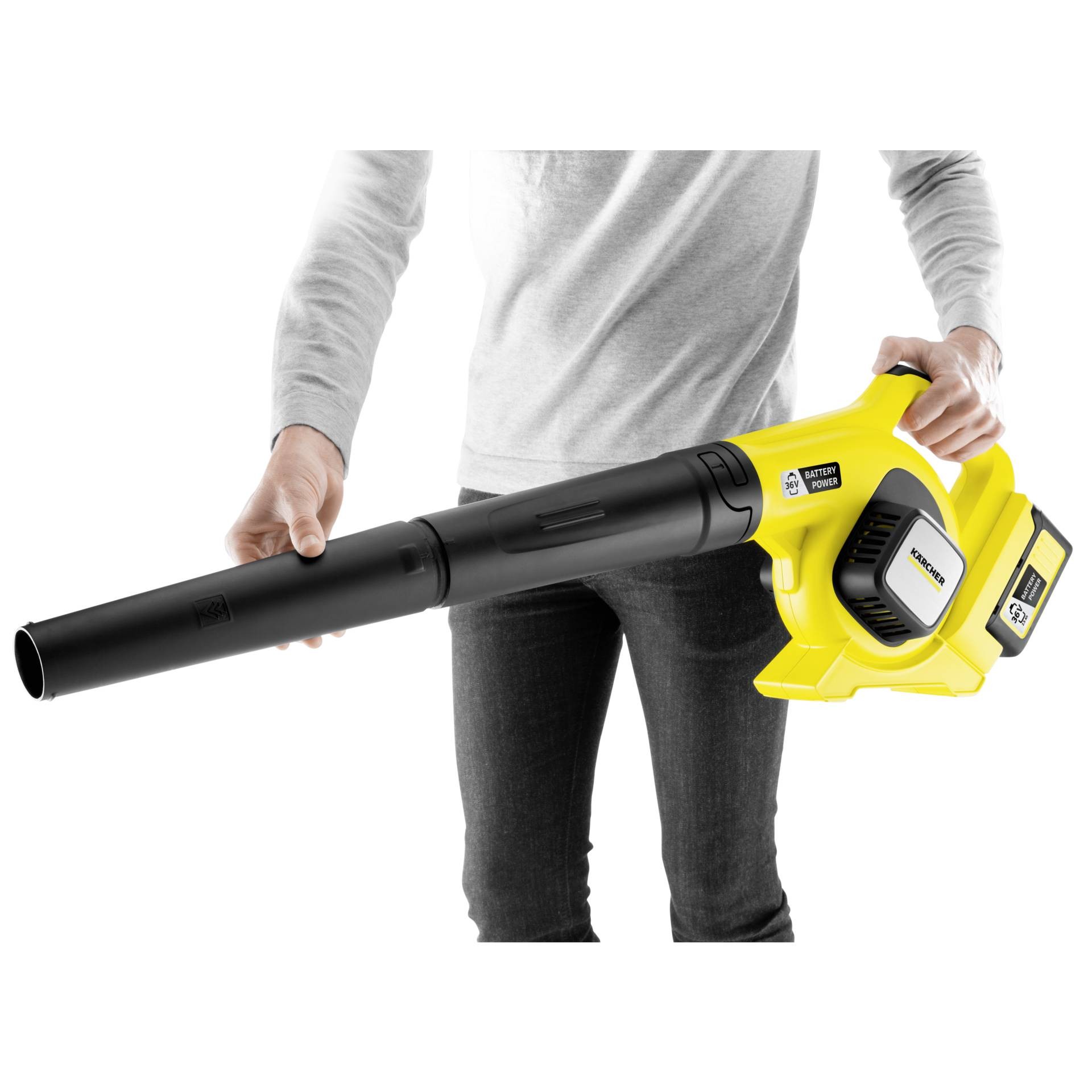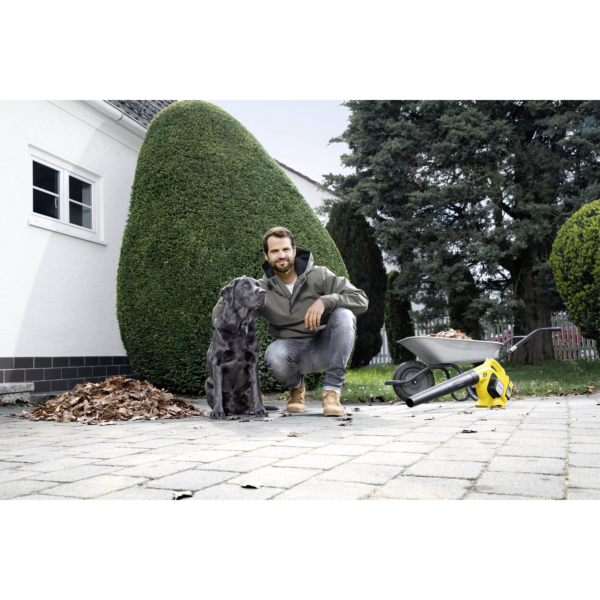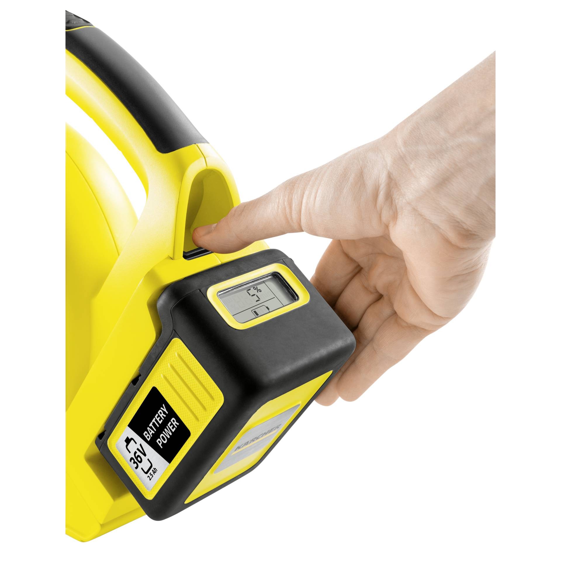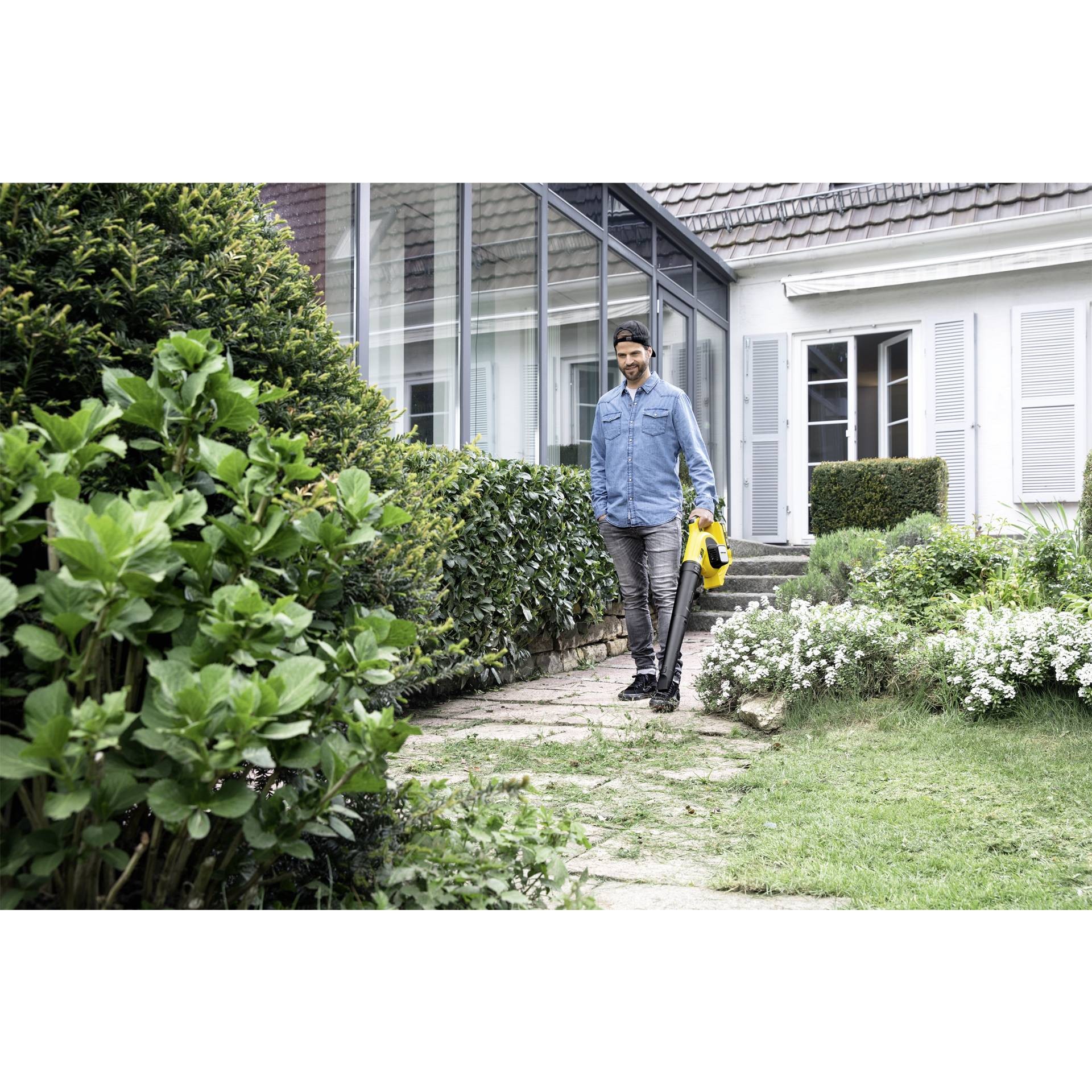 Powerful and mobile: The 36 V battery-powered leaf blower including 2-stage power regulation reaches a maximum air speed of 250 km/h.