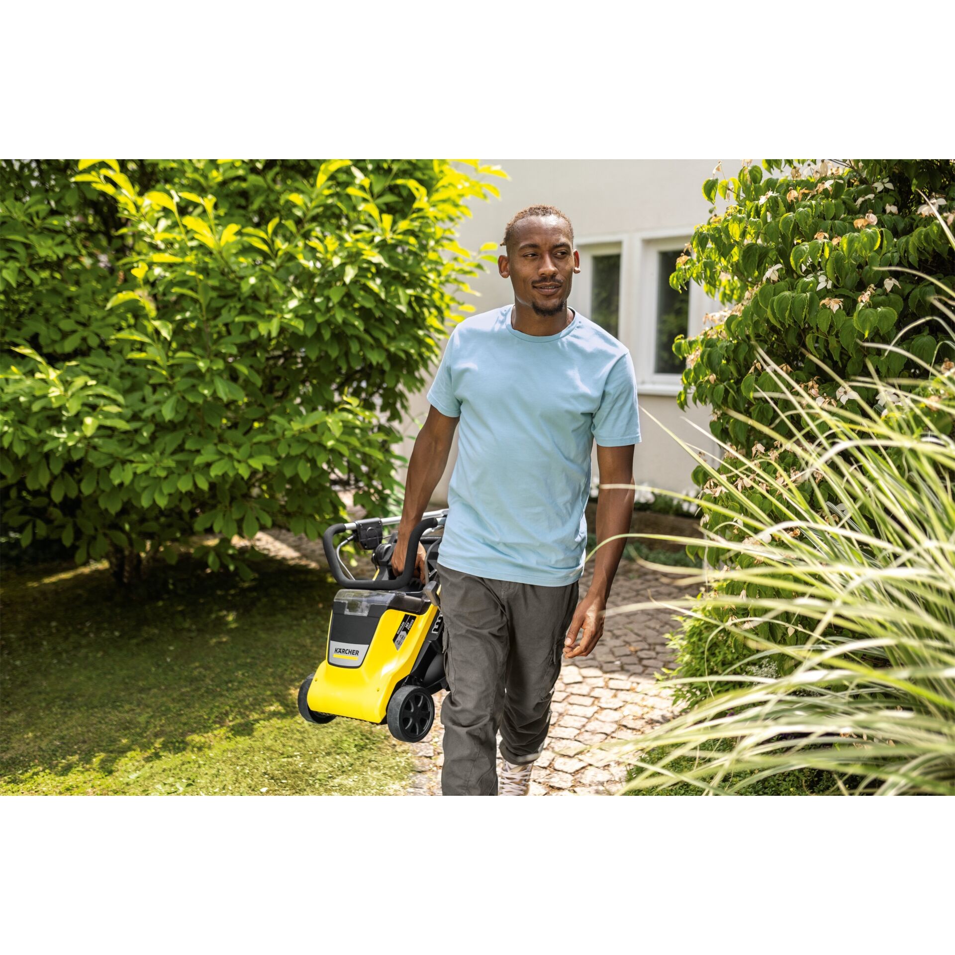 Powerful and very mobile: Powered by 2 18 V batteries and brushless 36 V motor, the LMO 4-18 Dual is the ideal solution for lawns up to 450 m 2. The low weight makes the mower particularly manoeuvrable and mobile, making it easy to steer over uneven terrain and around obstacles.  The working width is 37 cm, a central cutting height adjustment allows the cutting height to be adjusted in 5 steps from 25 to 65 mm. Thanks to the intelligent motor control, the iPower function ensures that the speed of mowing automatically adapts to the grass conditions. Lawn combs automatically detect grass growing near the edge.  With the 2-in-1 mowing system, the mowed crop is evenly distributed on the lawn as fertilizer via a mulch wedge or collected in a large 40 litre grass catcher - for long mowing without stopping.  The guide handle is height-adjustable for a comfortable working posture. If the pole is folded, it can be stored in a very space-saving way. For transport via stairs and ledges there is a large, stable carrying handle. Compatible with all replaceable batteries of the 18 V Kärcher Battery Power battery platform.