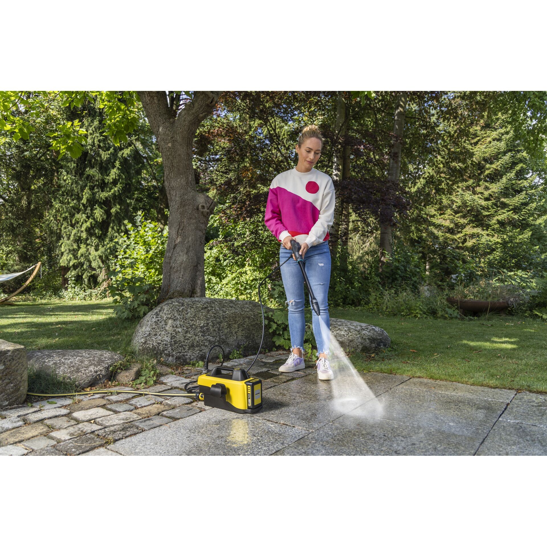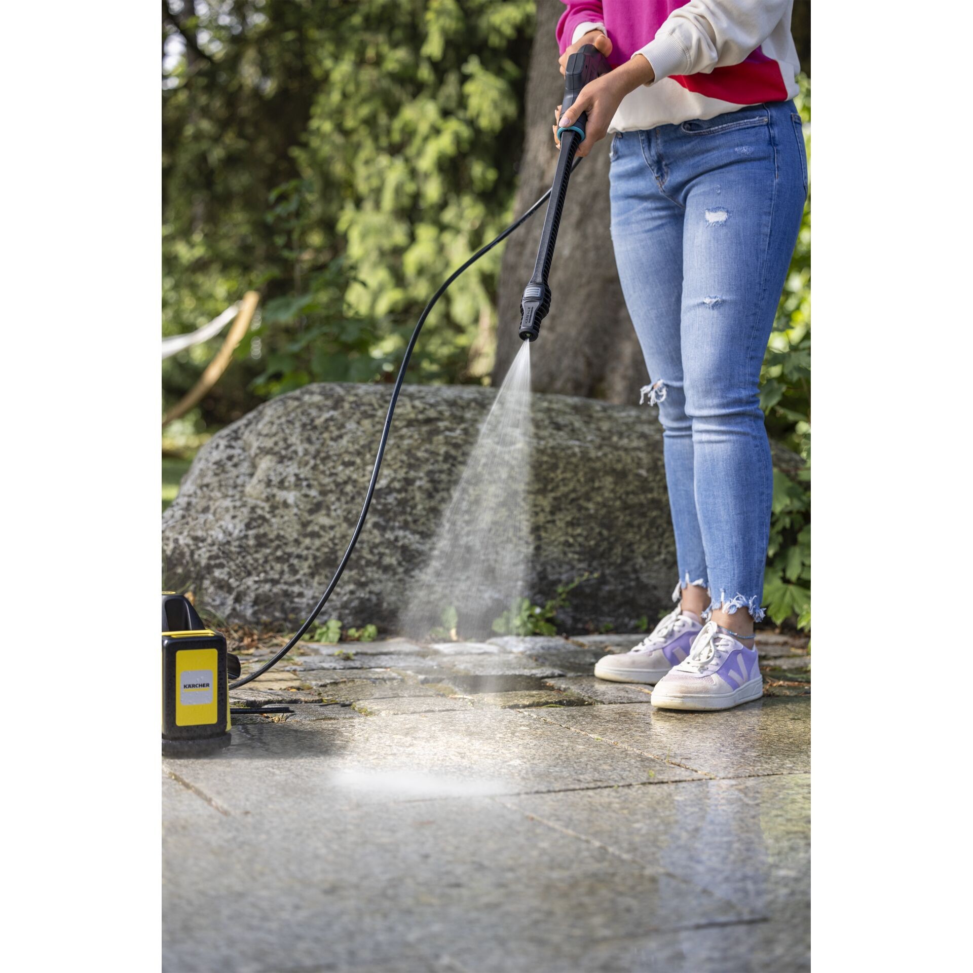 • The lightweight and compact cordless medium-pressure cleaner for quick intermediate cleaning without a power connection. 18 volt rechargeable battery, charger and suction hose are available separately.